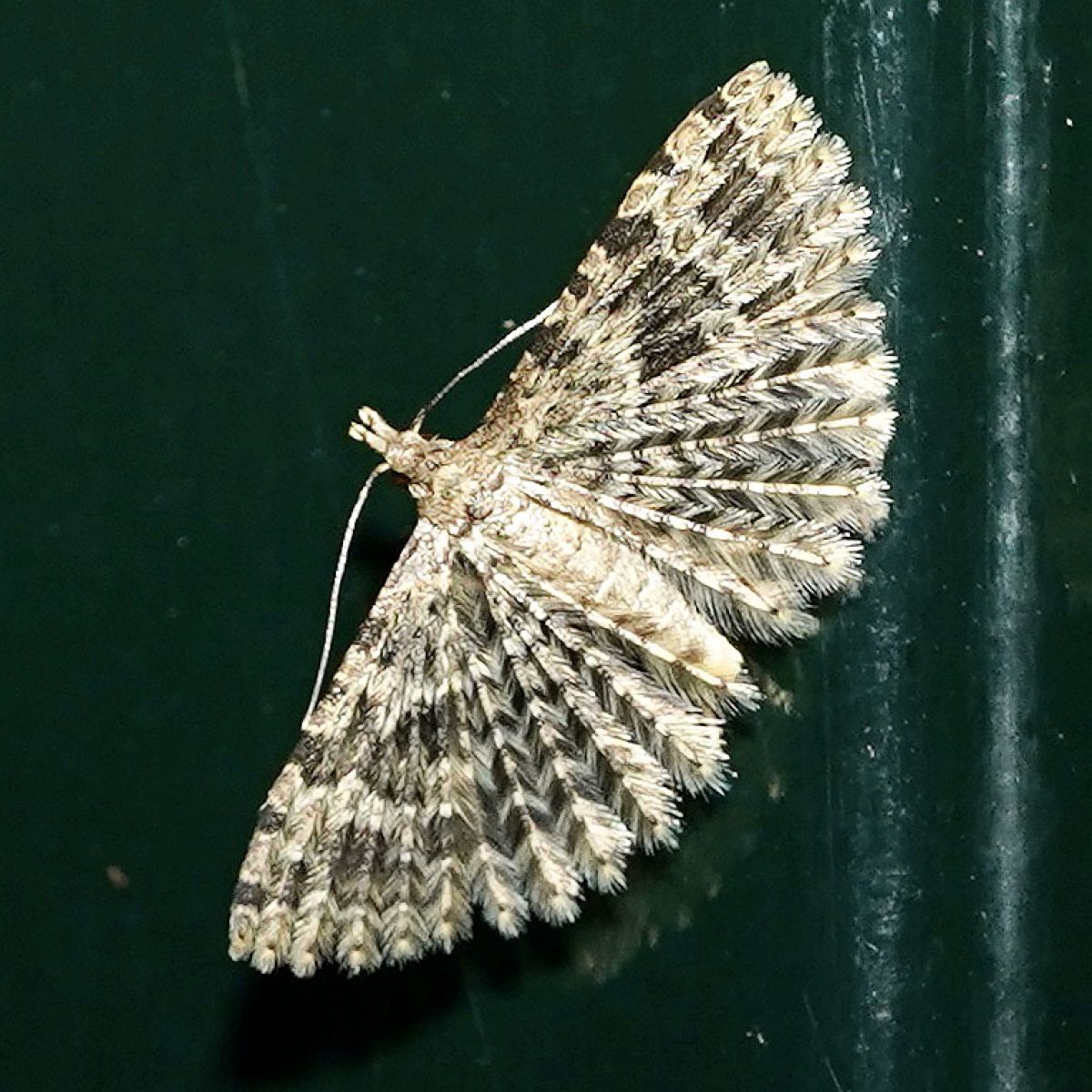 dit is een waaiermot. kan dit een kamperfoeliewaaiermot zijn. ca. 1,5 cm breed en ca. 1 cm lengte lijfje. zat vanavond op de voordeur. west-brabant.
