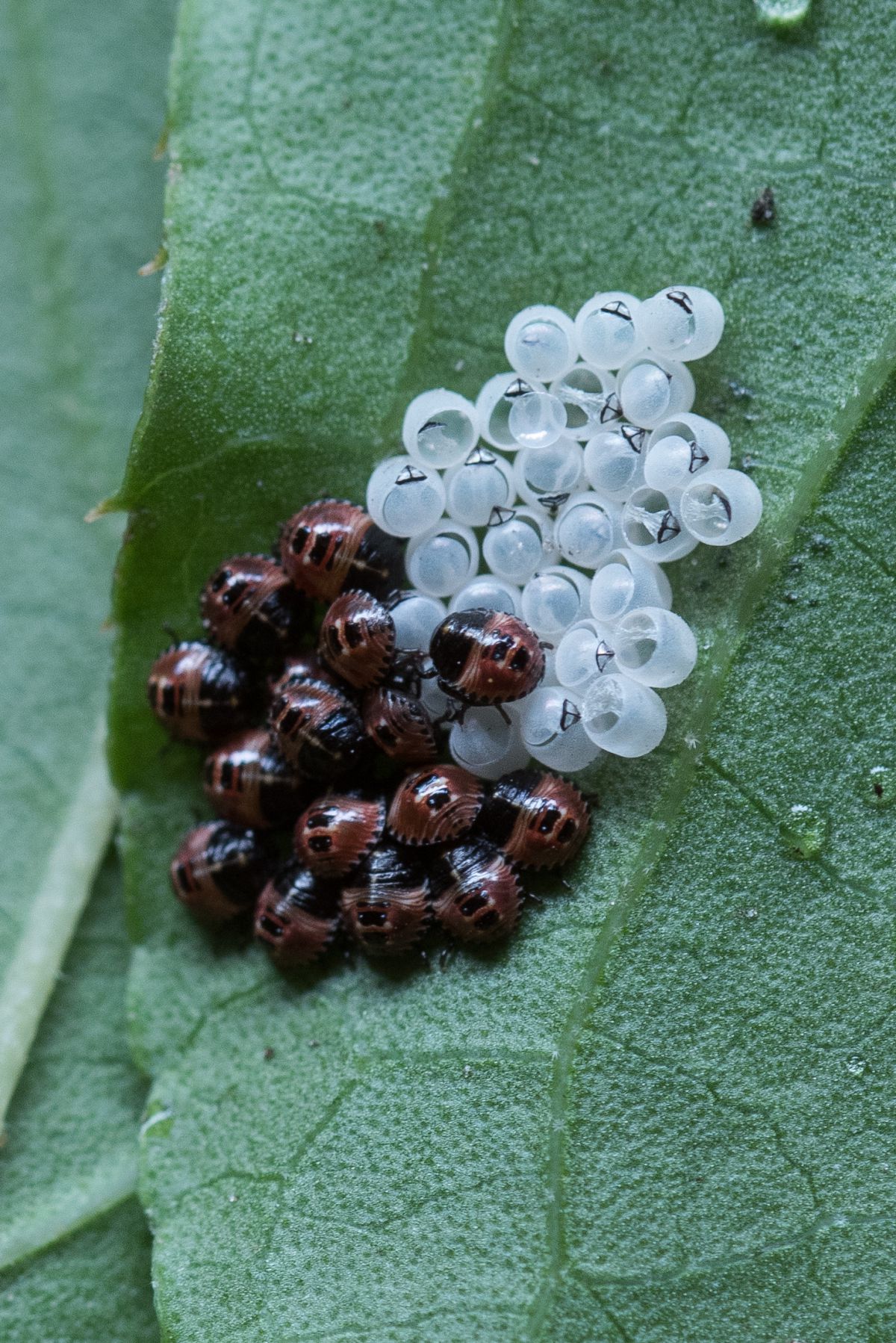Dit vond ik in de tuin. Het zat aan de onderkant van een blad van een Deutzia struik. De diertjes zijn afzonderlijk ongeveer 3mm