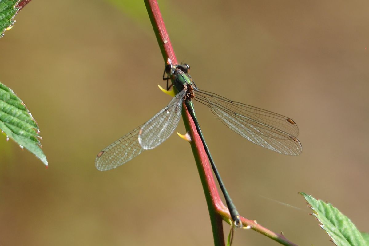 Gezien bij een bosvijver in Tilburg. Het is al laat in het seizoen en de kleuren vervagen dan dus ik weet niet zo goed welke juffer dit is.