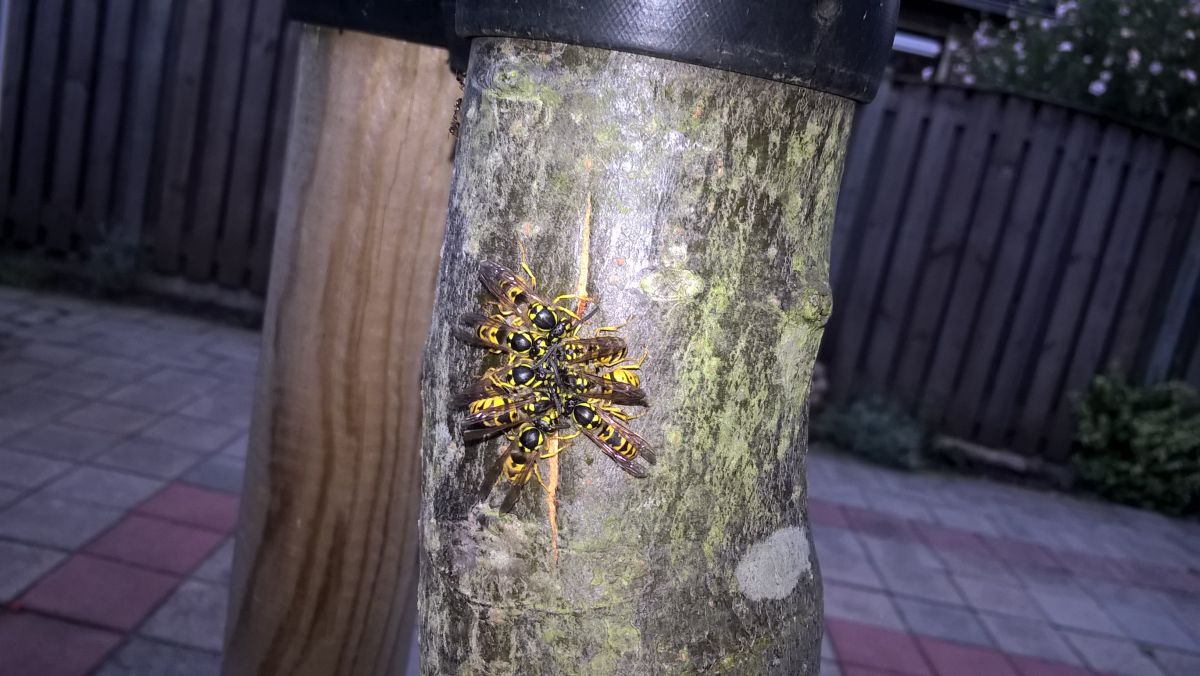 Ik heb een wild appelboompje in mijn tuin en sinds een paar dagen zitten er naar ik dacht wespen op die uit een scheur in de bast drinken? Na eens te hebben gezocht op internet ben ik gaan twijfelen of het geen hoornaars zijn.Kunnen jullie mij hier meer over vertellen?
