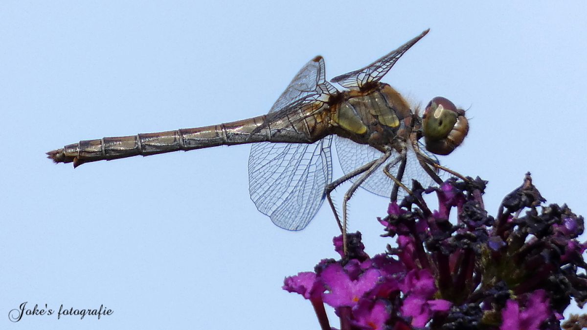 Deze libel zat vanmiddag lekker in de zon op de vlinderstruik.