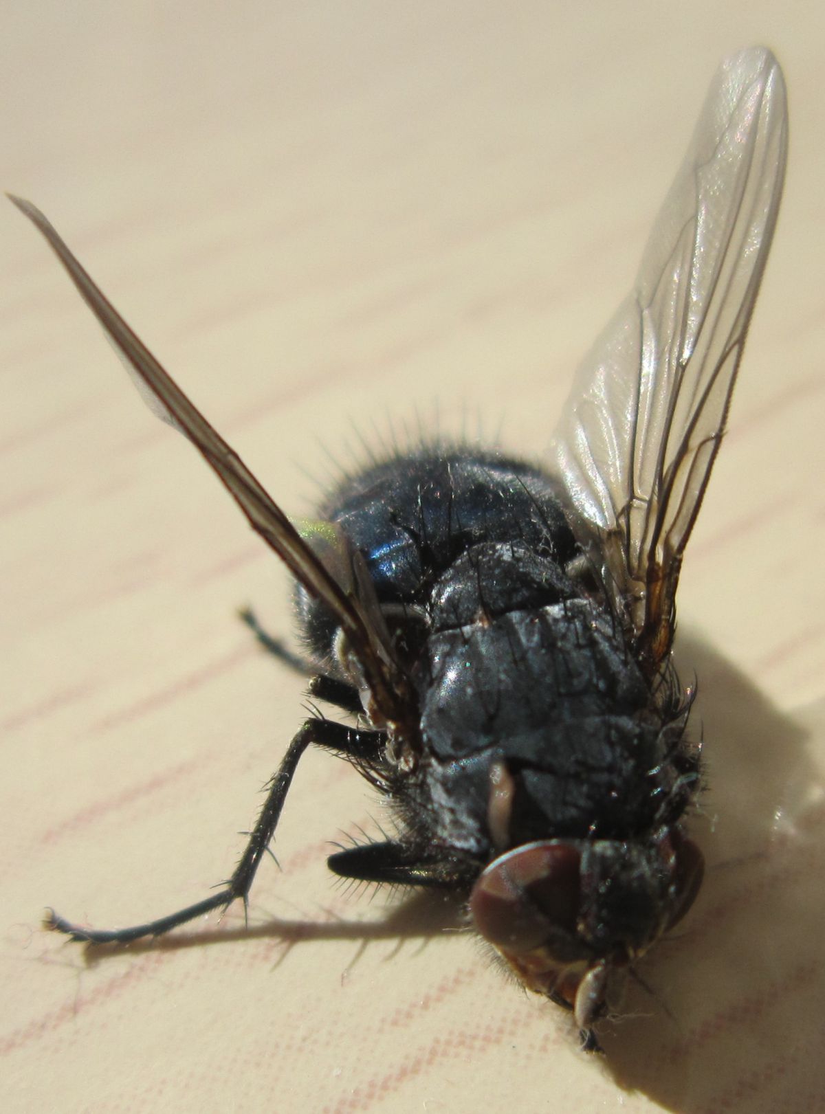 de achterkant is glimmend blauw ..mooie vleugels met een patroondie was hier in huis in Twente