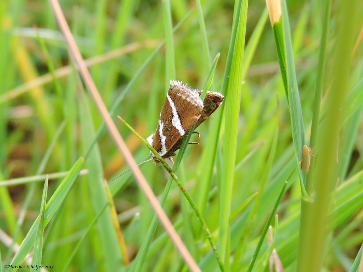 15 juni zag ik dit mooie kleine vlindertje kan hiervan ook geen naam vinden en iepenuil het zou misschien zomaar kunnen maar die is al een tijd niet waargenomen.Wie weet de naam vr. groet Marijke