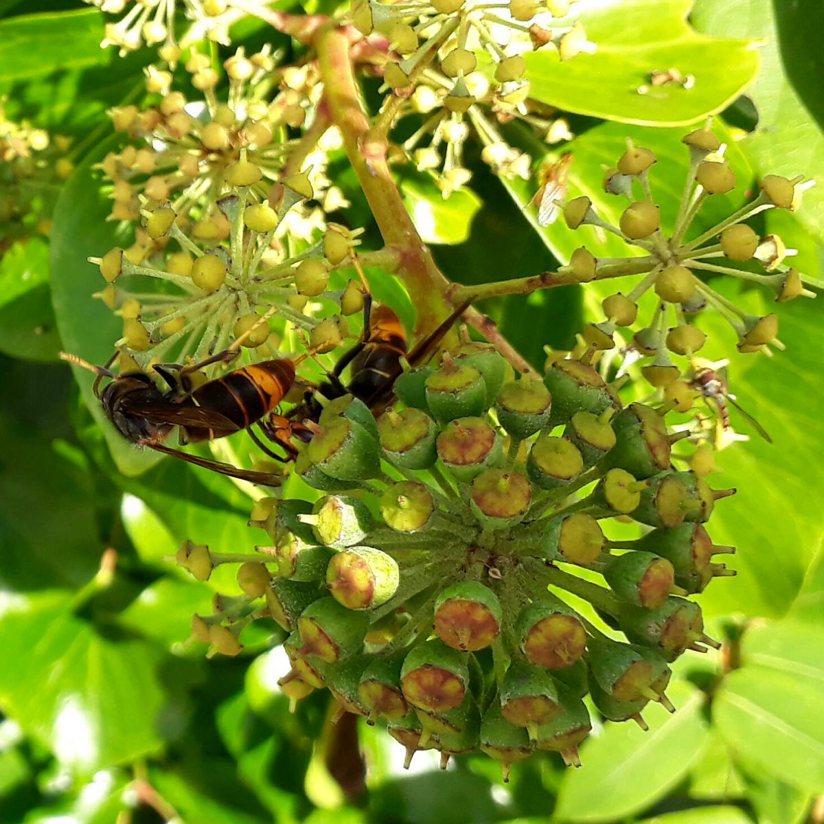 Het zokn er een stuk of 20 en ongeveer 1,5 cm groot. Ze eten de nectar van de bloemen van de klimop.