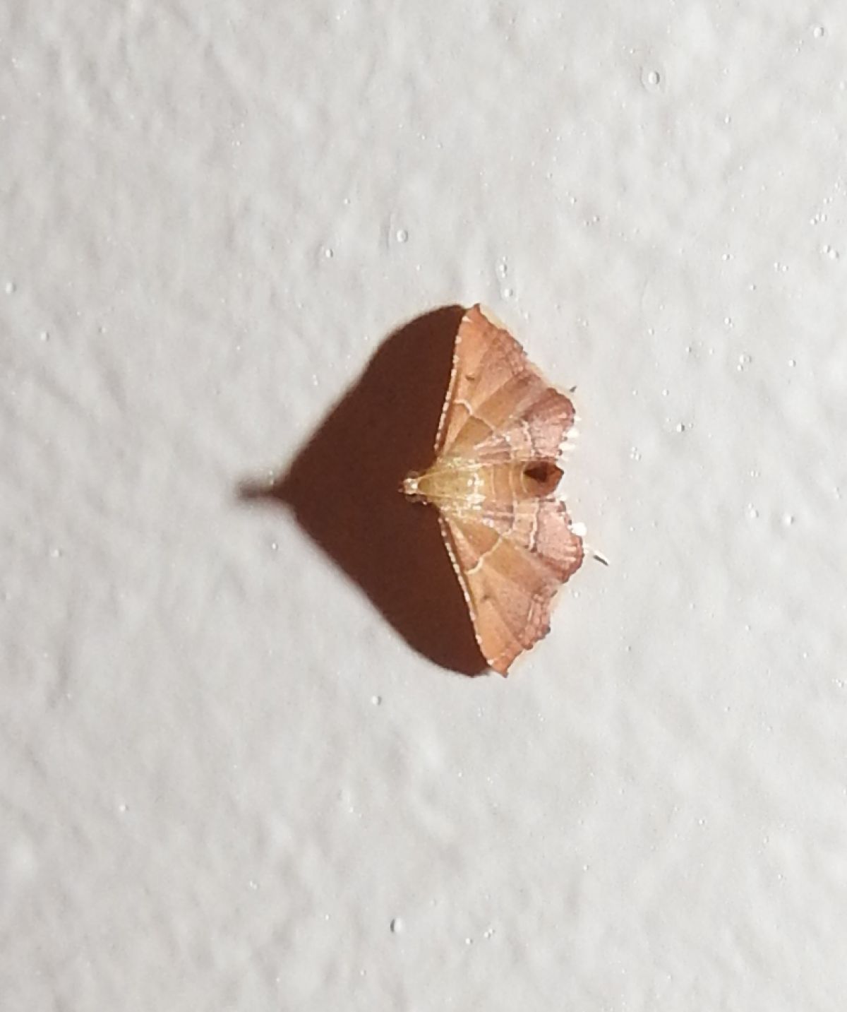 Voor deze nachtvlinder geldt het zelfde. Deze zat elke dag binnen in mijn hotel tegen de muur. Wie weet wat het is? Hij heeft wel een speciale manier van tegen de muur zitten.