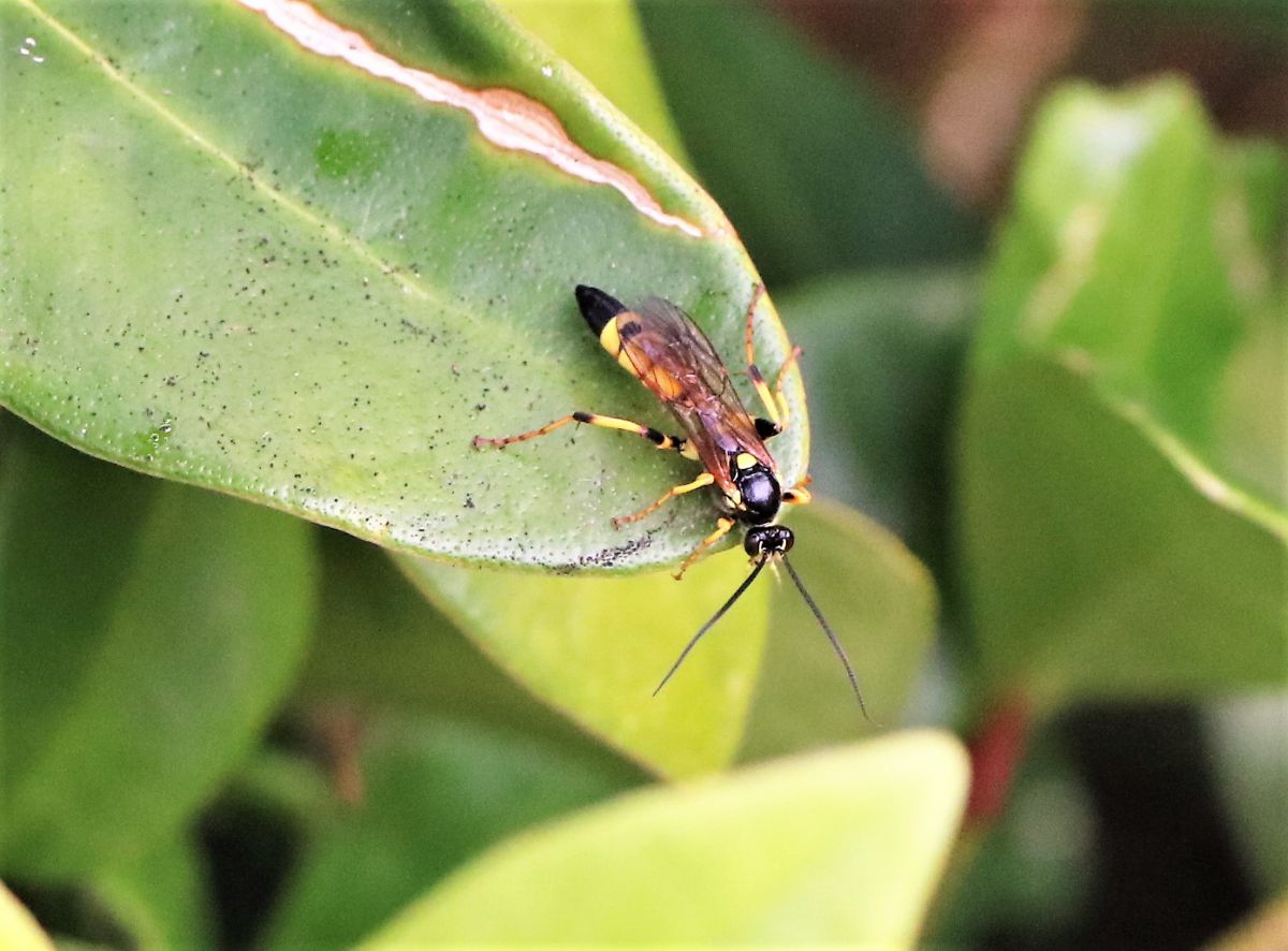 in mijn tuin kwam ik deze "wesp" tegen er waren meerdere exemplaren en waren constant aan het heen en weer vliegen met hangend pootjes,ik heb gezocht maar kan er niet achter komen wat voor soort dit is.