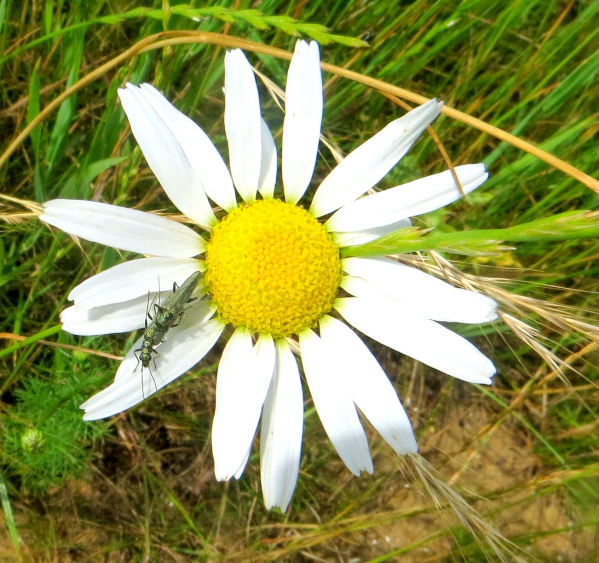Met het blote oog zag ik iets langwerpig groens op deze margriet in de Peut bij Barneveld. Op de laptop zag ik 2 groene beestjes. Kan iemand hier iets over zeggen?