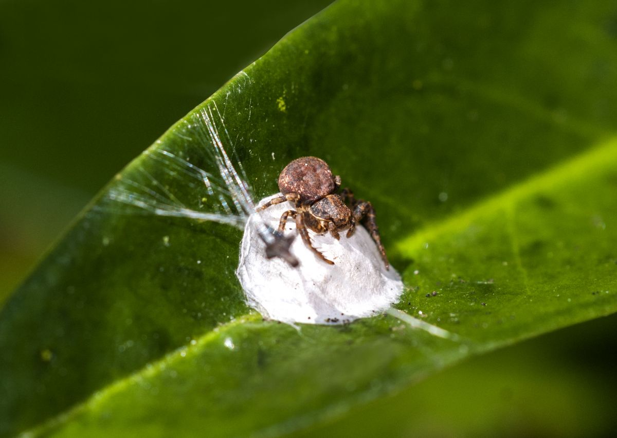 Welke spin maakt hier een cocon? Heb geen goede determinatie kunnen doen, maar wel een behoorlijke macro kunnen maken.