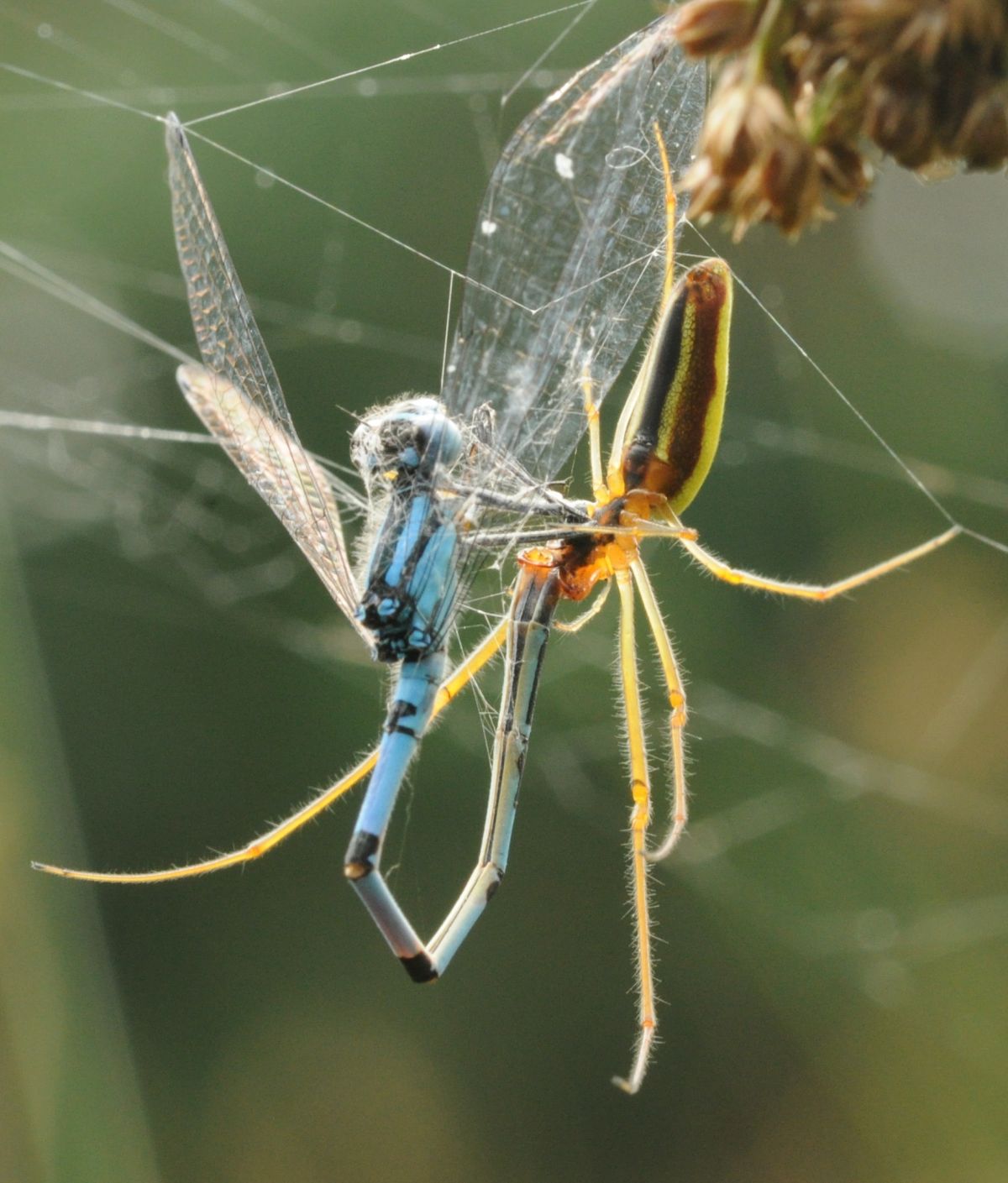 heeft deze juffer gevangen. ? Op de foto hangt de spin ondersteboven.