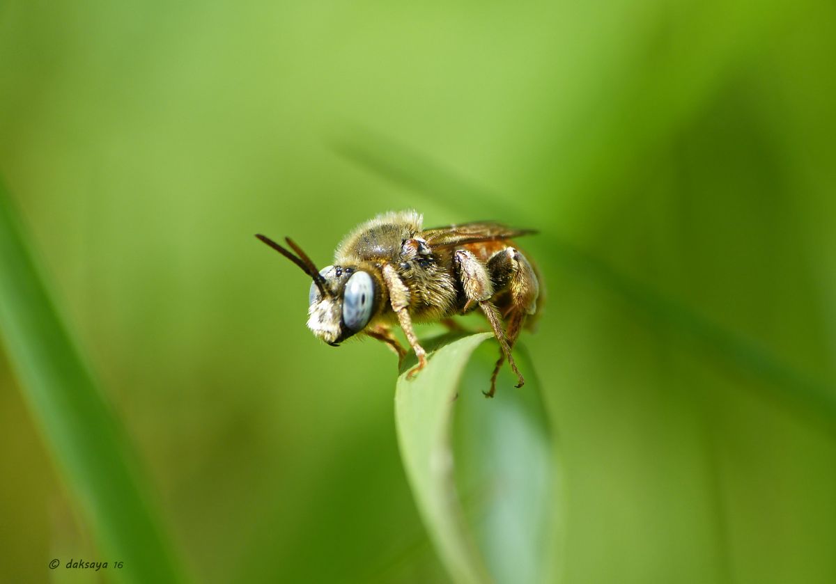 Een onbekende bij met opvallende ogen. Wie weet de naam