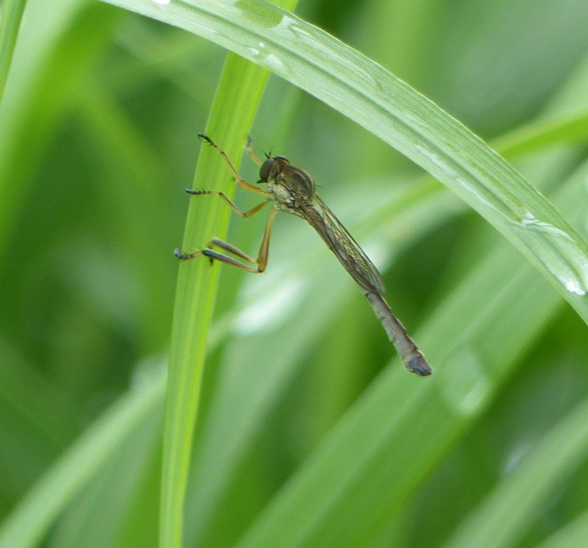 Afgelopen zondag, langs de raam (riviertje), heide, kleine bospercelen, zat deze voor mij onbekende vliegje aan de onderkant van een blad verscholen, wilde eigenlijk een ander insect op de plaat zetten toen deze even verscheen, heb hem toch te pakken kunnen nemen (figuurlijk). Maar welke is het. Gr....