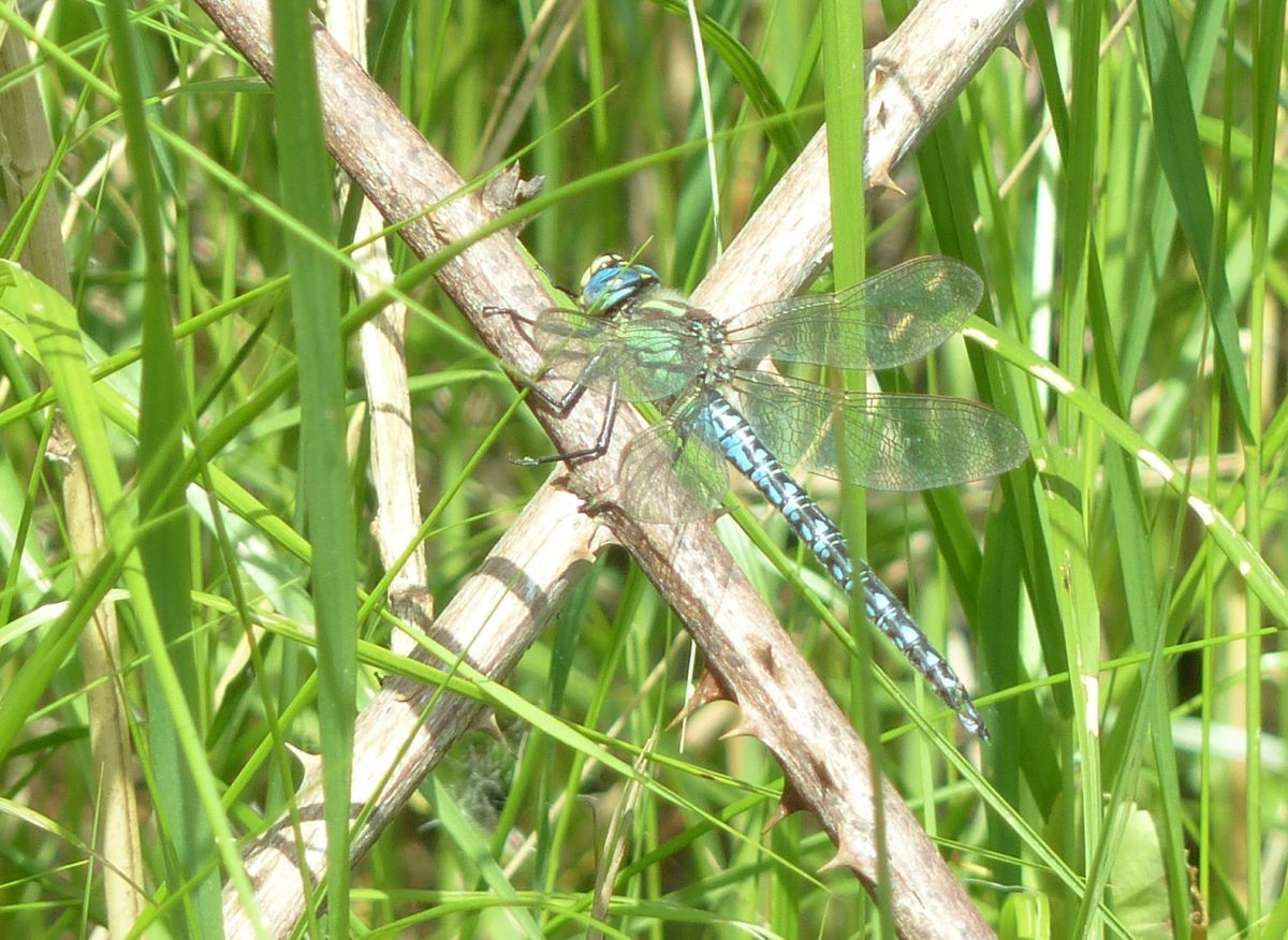 Vandaag zag ik het Braandemeer, een laagveen gebied een vrij kleine blauwe libel. Is dit een zuidelijke glazenmaker. Ik helaas alleen maar een foto van de zijkant.