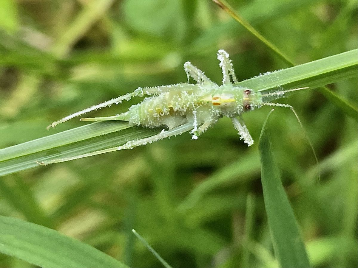 Deze foto is van vanochtend en ik zie er nu duidelijk een sprinkhaan in maar wat is ermee aan de hand?