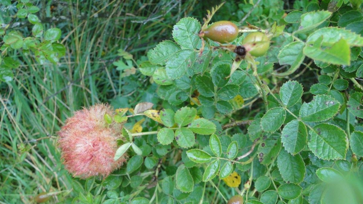 Dit zag ik aan een rozenstruik. Is het gemaakt door een insect, weet iemand wat het is, voelde aan als textiel zelfs, maar zat echt vast aan de struik.