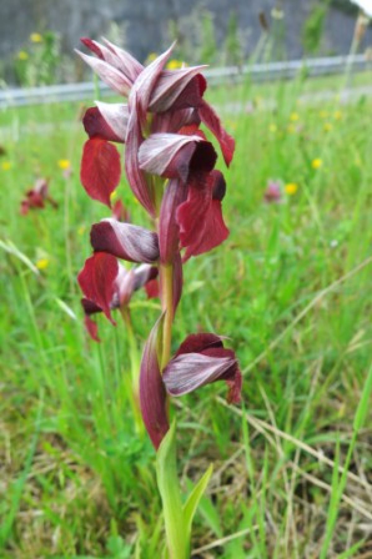 tijdens vakantie vorig jaar in april midden Frankrijk zag ik deze voor mij bijzondere paarse bloeiende planten tussen speenkruid in de natuur. Ik kan hem maar niet op naam brengen.