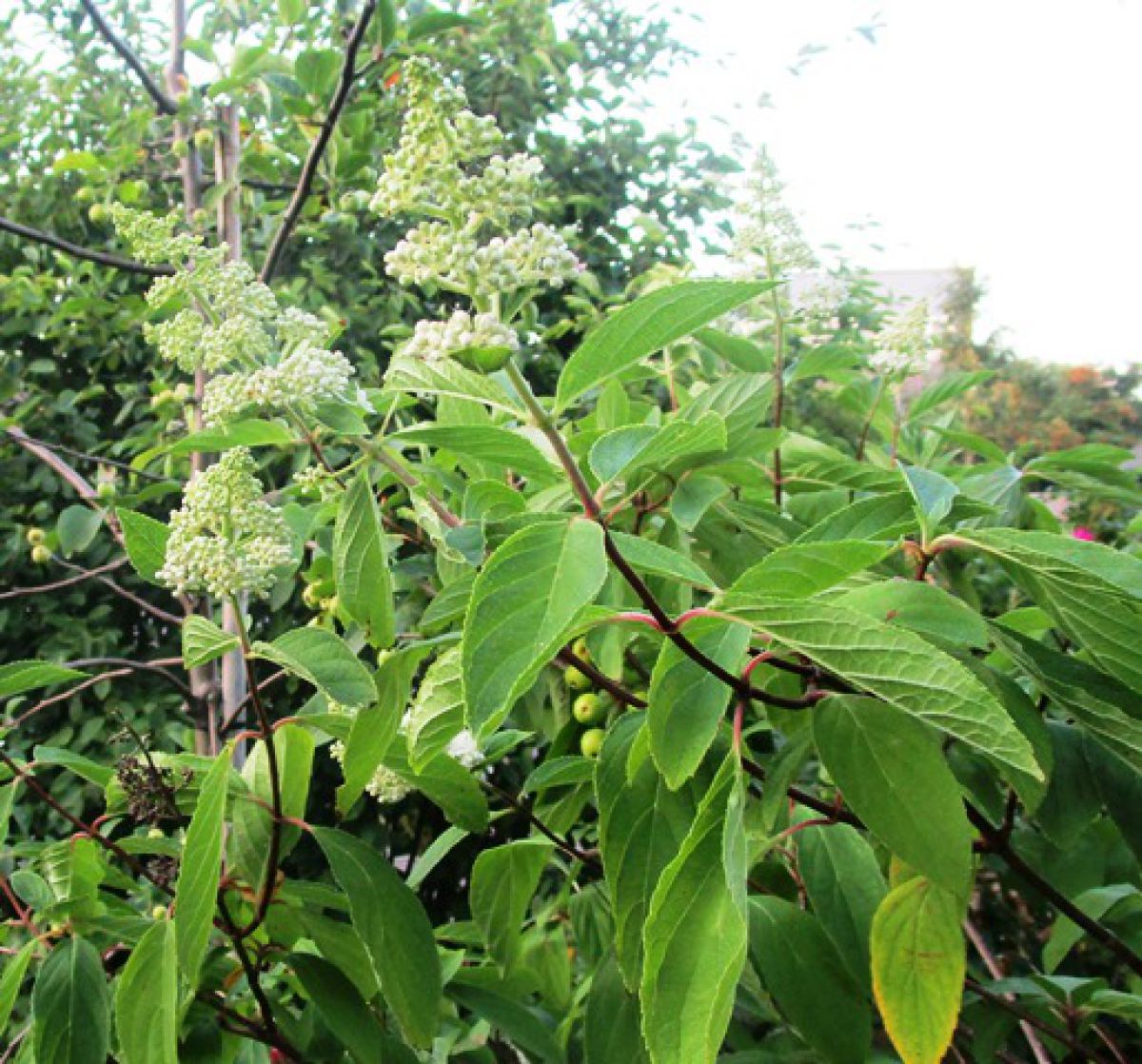 Een oude houtige struik naast mijn Japanse cornoelje ( die naam weet ik nu, dankzij het forum) krijgt een soort bloemen, die er uit zien alsof het spirea gaat worden of zoiets. Hij is me vorig jaar niet opgevallen, maar toen hield ik me bezig met de planten.