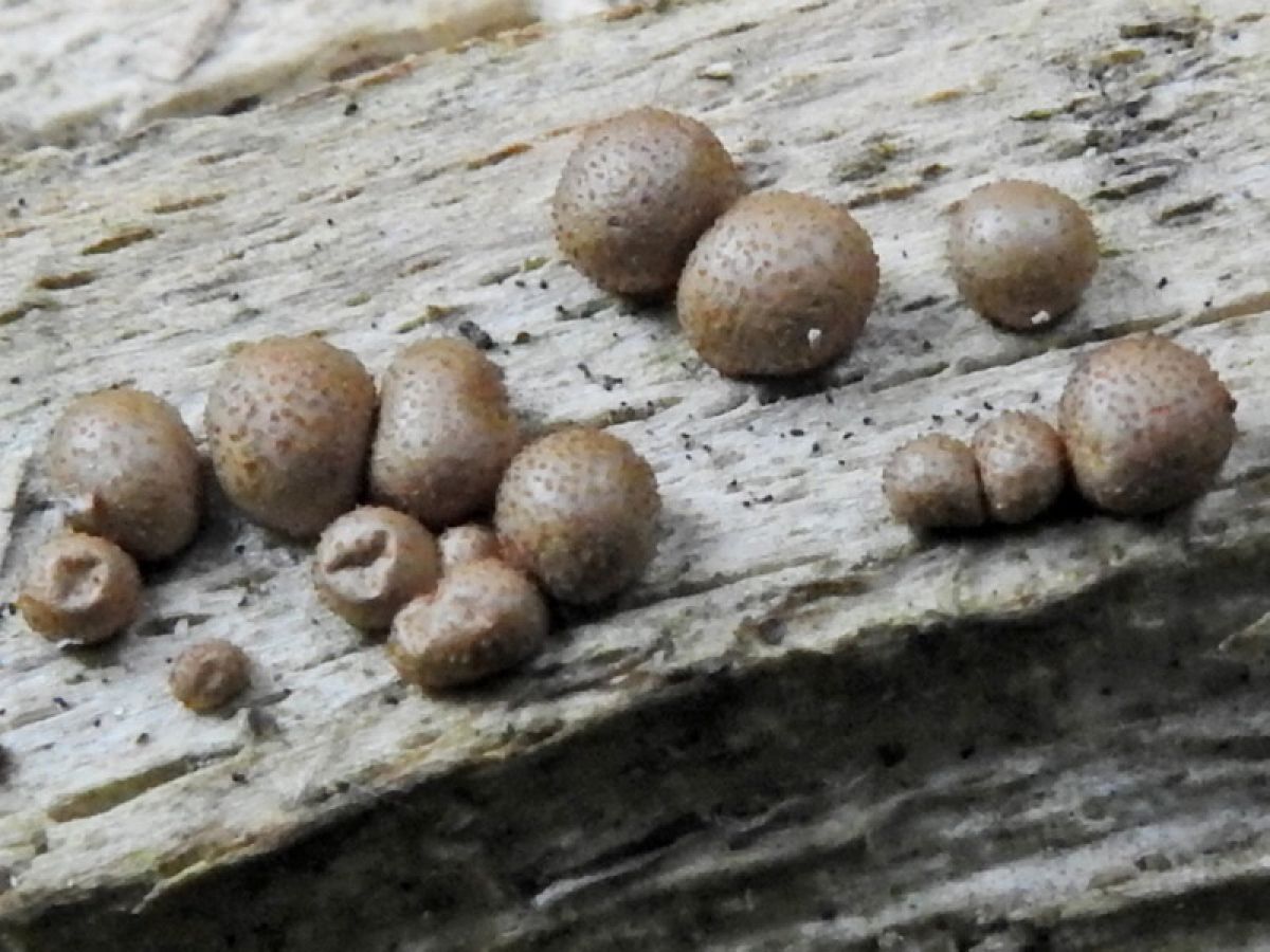 Op een dode stam van een loofboom ontdekte ik deze kogeltjes van maar enkele mm doorsnee.Ben erg benieuwd welke zwam dit is.Bvd.Wim
