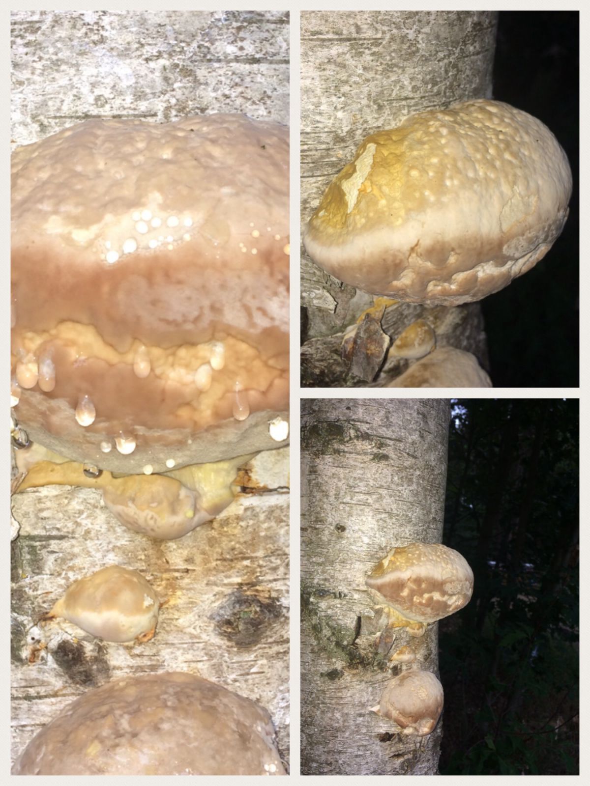 Deze zwammen groeien sinds twee weken op deze dode berk. Kan iemand de zwam thuisbrengen?