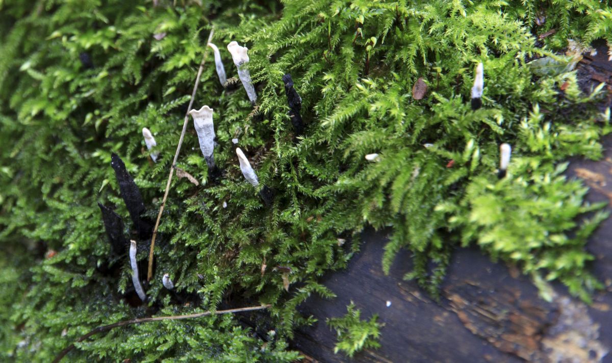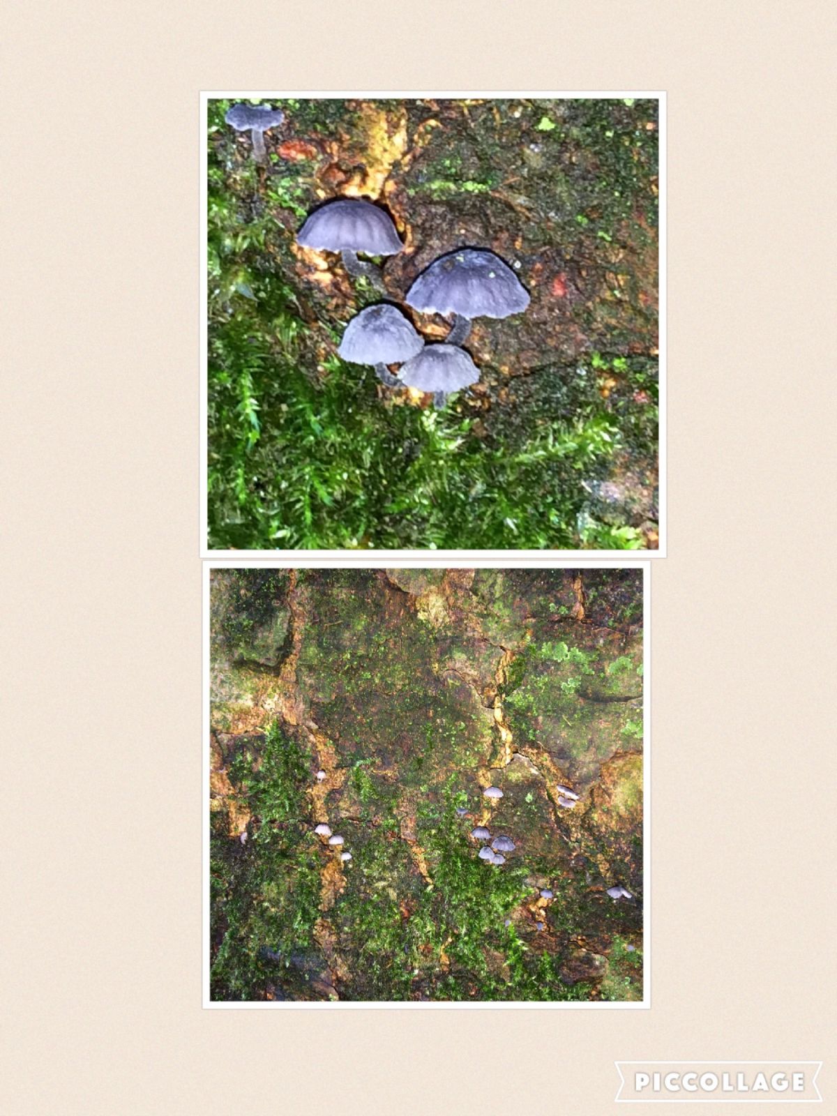 Op de bast van een levende boom (in een gemengd loofbos met o.a. Eiken) ,die ook begroeid was met mos, vond ik deze zwammetjes. Ze zijn heel klein, de hoedjes maar een paar millimeter breed, met het blote oog kreeg ik ze niet goed in het vizier. Kent iemand deze misschien?
