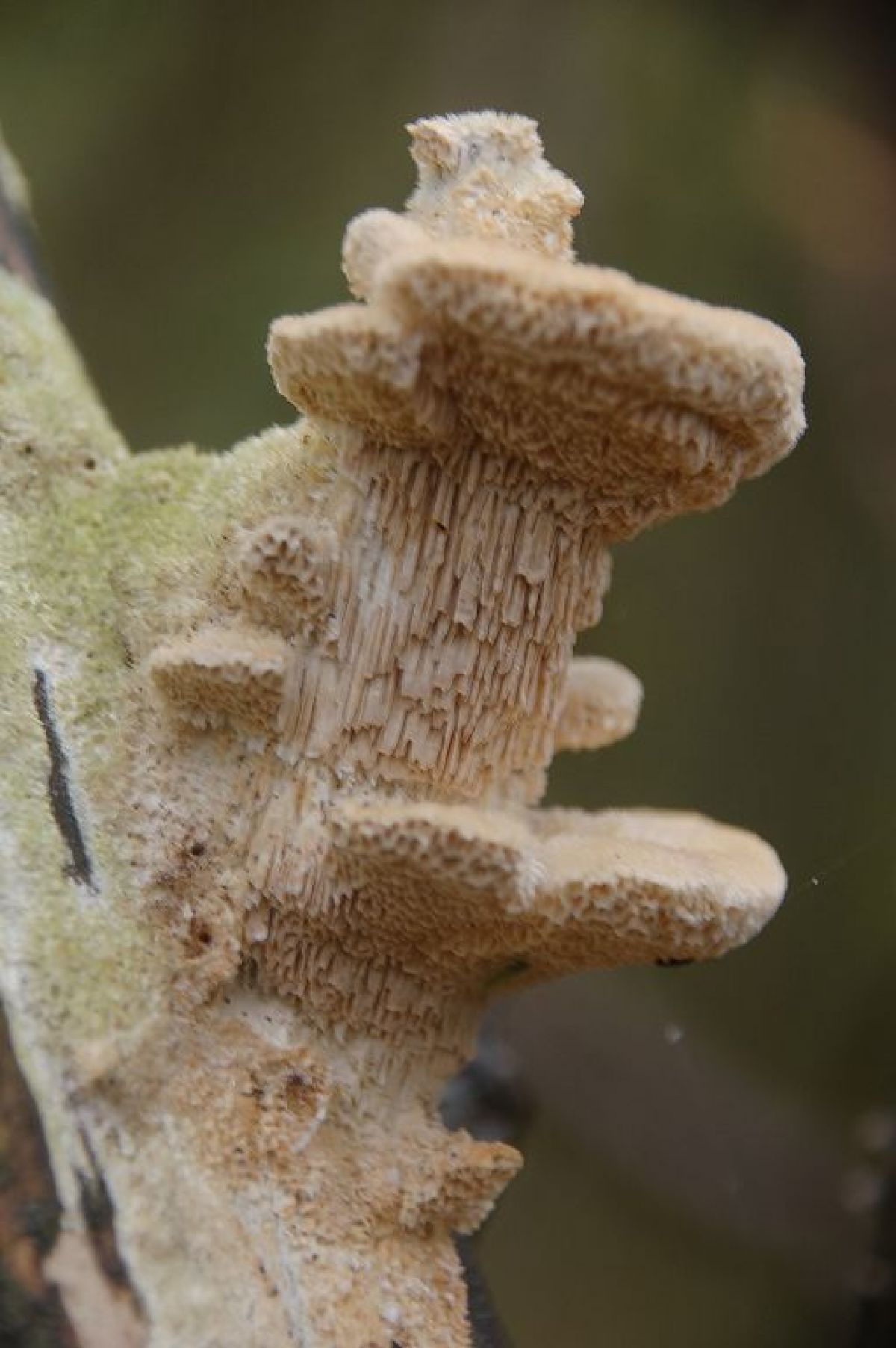 Ik zag gisteren in het beukenbos voor de tweede keer dit kleintje, zag er vorige week ook één en ik wilde nu kijken wat het was geworden maar ik heb hem niet terug gevonden. Ik dacht eerst een oesterzwammetje maar nee dat is het niet. Ik zou het niet weten, is er iemand die weet wat het is???????<...