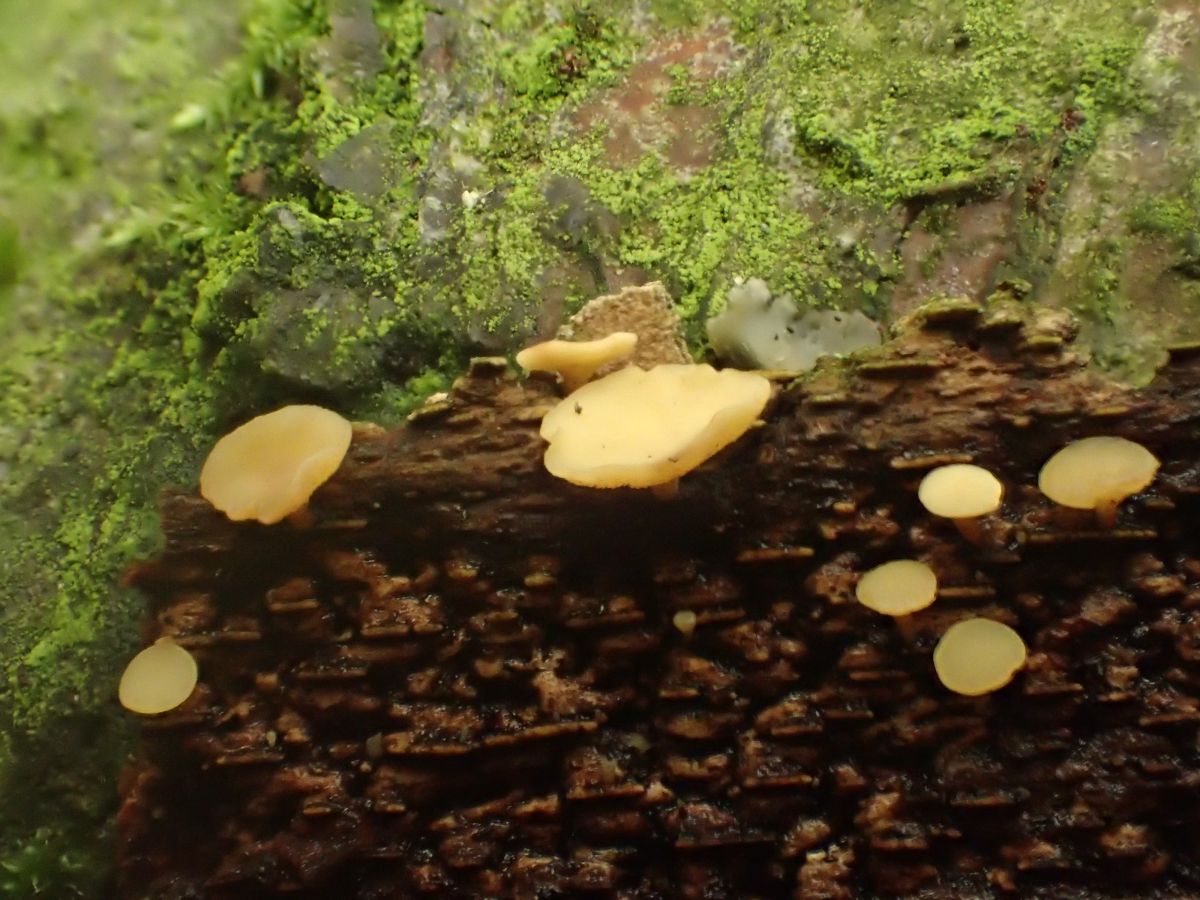 Hallo, heeft iemand een idee wat dit w=voor een paddenstoel is hij is 5 mm breed en zat op Beuk. Groetjes Agaat Mesman