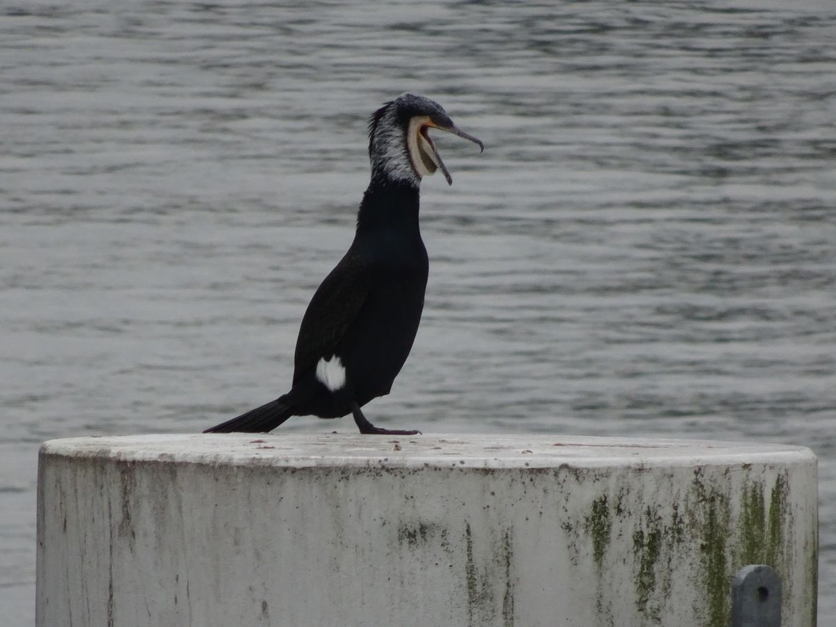 De Aalscholver zat +/_ 6 seconden met open snavel ( niet van verbazing :) .