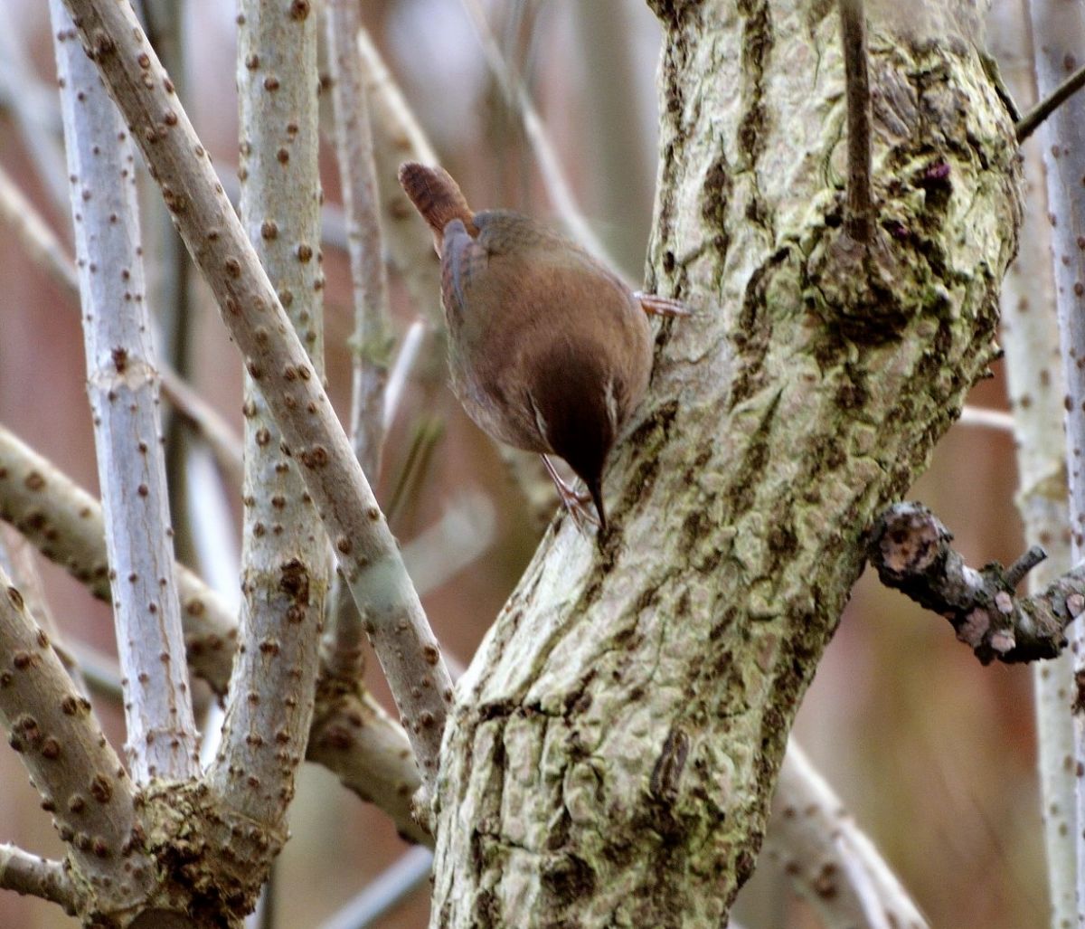 Ik denk dat het een winterkoninkje is, maar twijfel door de donkere (bovenkant) kop en het feit dat-ie hoger op een boom zat .