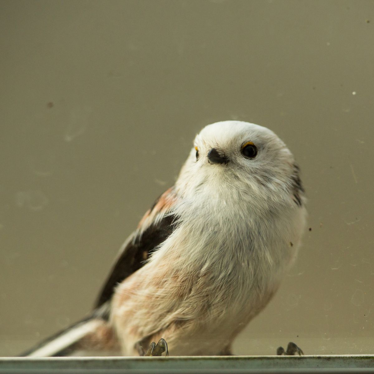 Tussen de "gewone" staartmezen zit een witkopstaartmees (weten jullie vast al!!) Sinds ongeveer een week komt die witkop een aantal keren per dag voor het raam van onze tuindeuren zitten. Hij gaat van het ene raam naar het andere...en vliegt dan weer weg. Eerst dachten we dat hij mss insecten zocht...