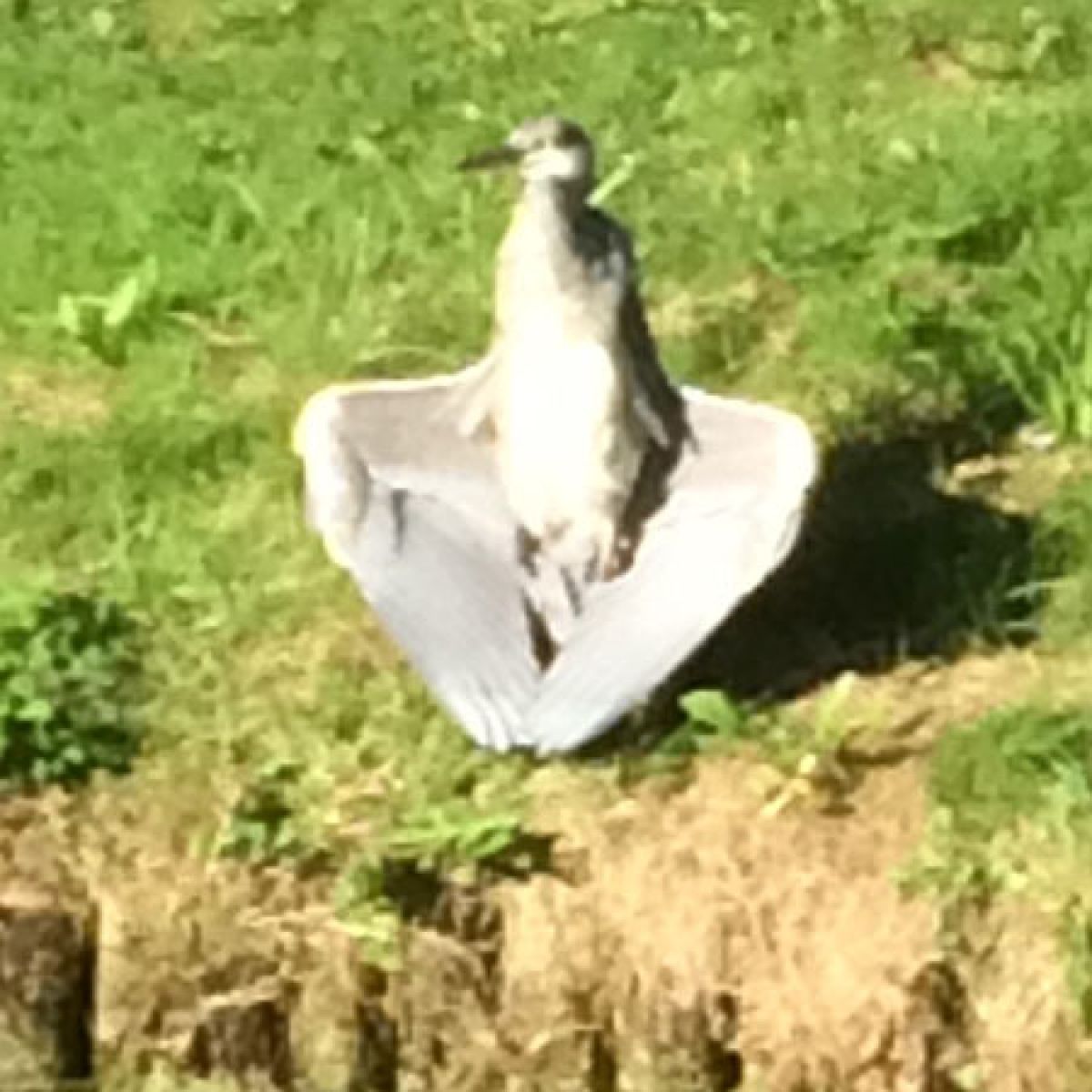 Gisteren een bijzondere vogel gespot: zat lekker te zonnen aan de slootkant . Jammer genoeg te ver weg om een duidelijke foto te maken. maar wat voor vogel is het nu?? een aalscholver, of jonge reiger?? ik heb nog nooit een dergelijke houdi...