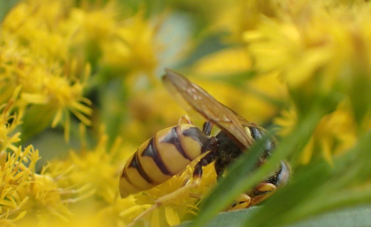 Een mooi groot insect op de guldenroede.