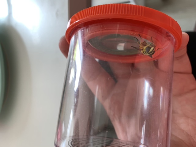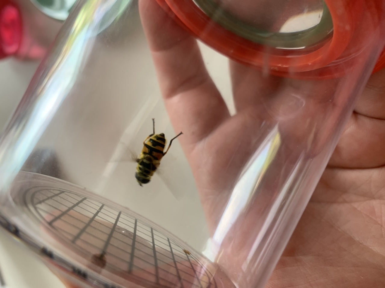 Niet echt lekker te zien met deze foto, maar ik gok dat het een doodskopzweefvlieg (Myathropa florea)is, Elvira. Goed dat je hem weer de vrijheid hebt gegeven!