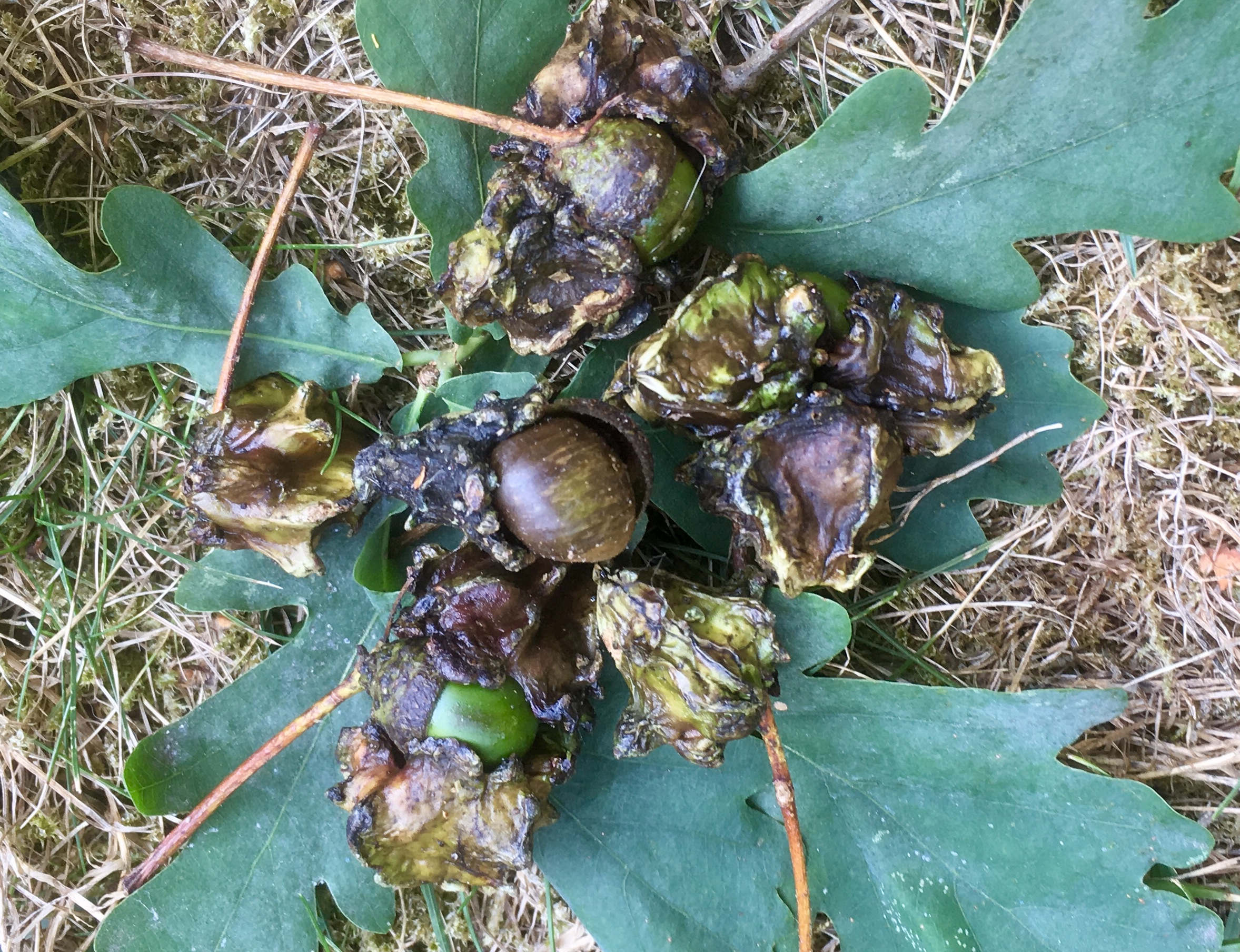 Hier is meer over die bijzonder gevormde eikels en de veroorzaker te lezen.