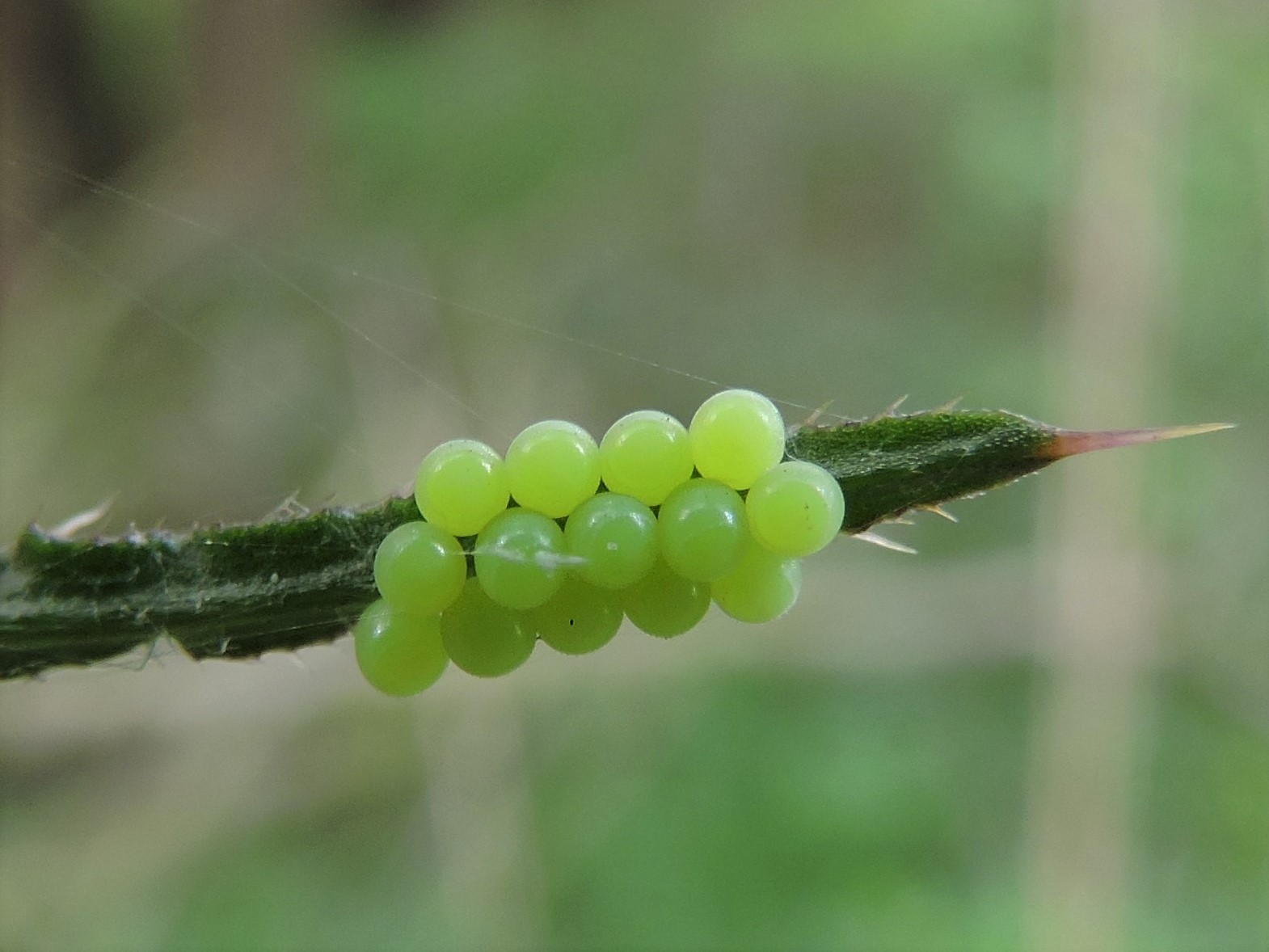 Vermoedelijk zijn het de eitjes van de Groene stinkwants - Palomena prasina.