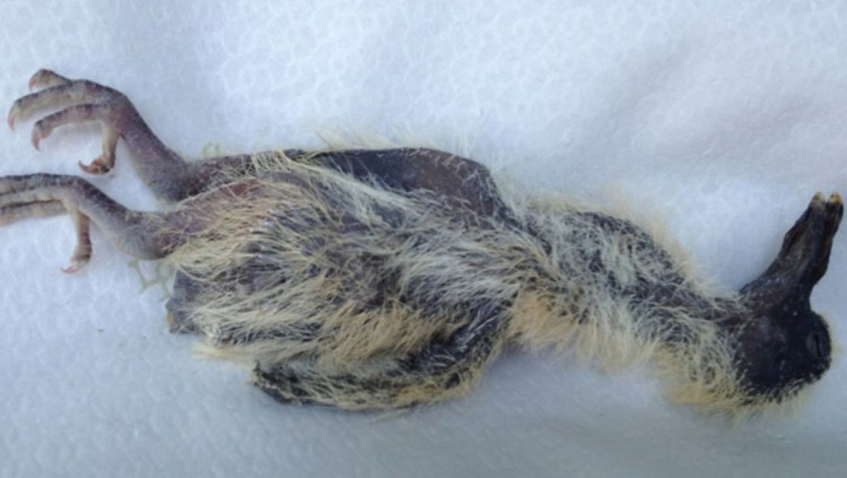 Een pasgeboren kuiken van ooievaar misschien?