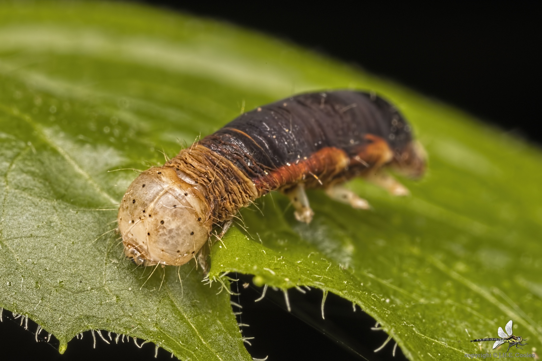Lijkt mij een vervellende rups Jan.....moet nog verder uitkleuren en dan wordt het gokken: Houtwilgenrups? Hoe groot?