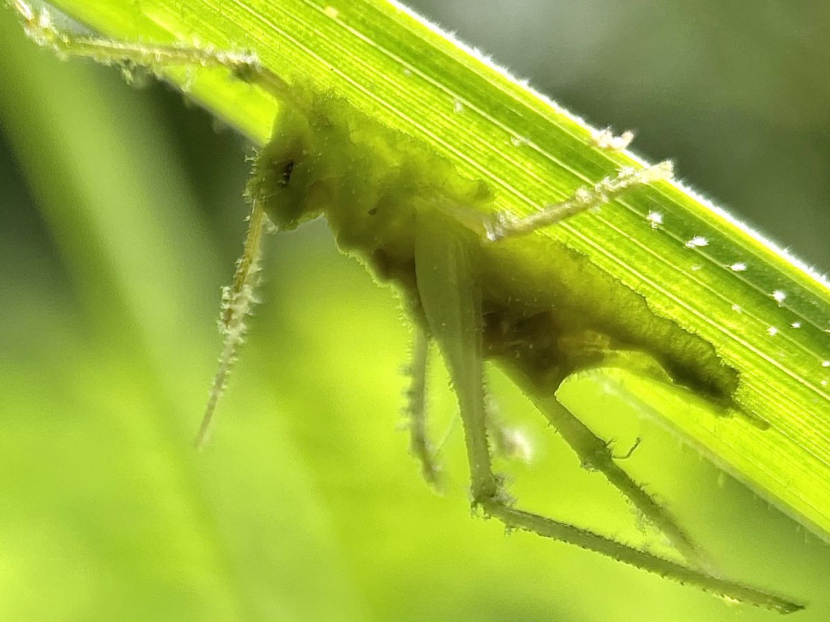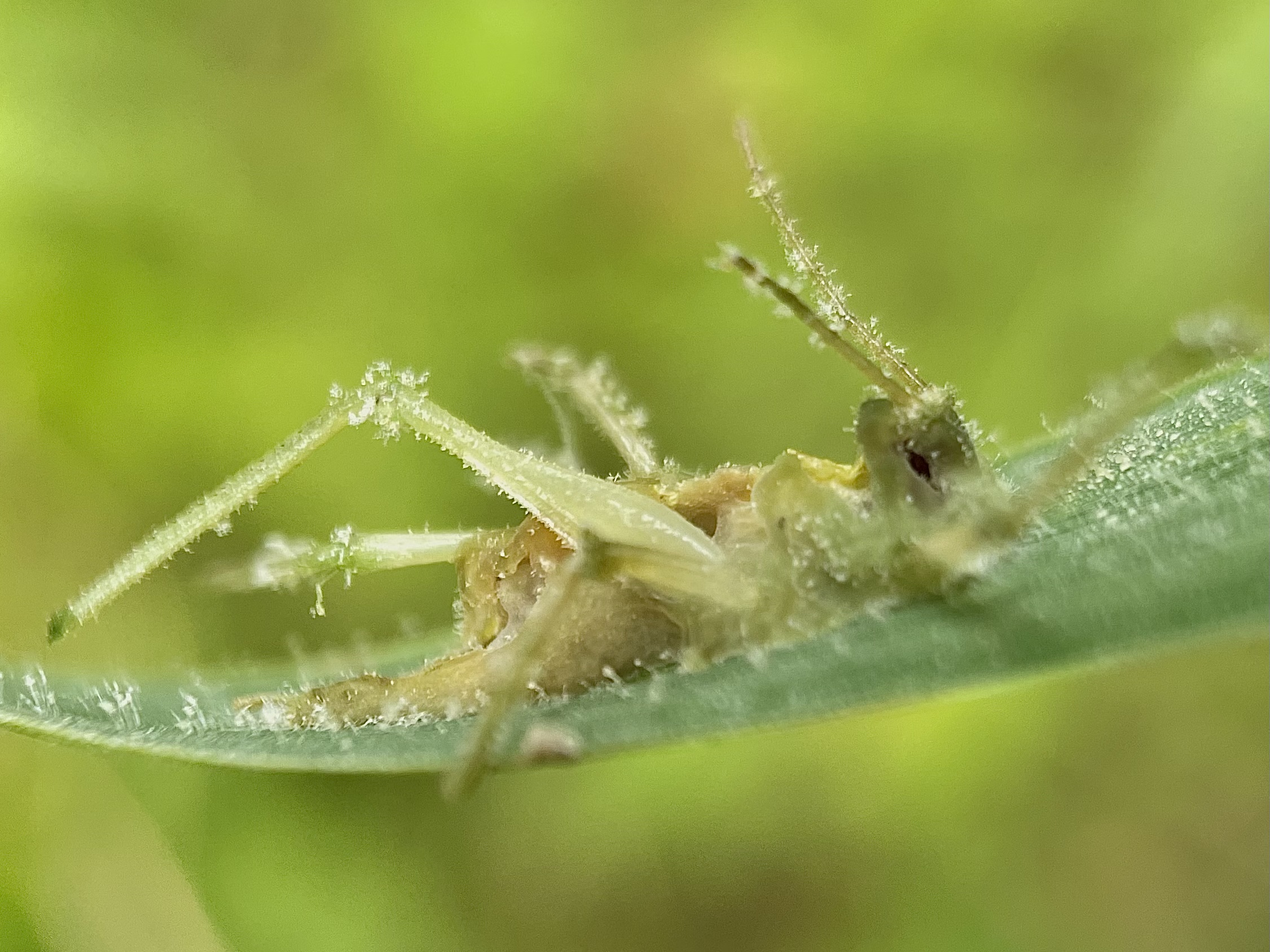 Of is dit inderdaad het groeistadium van een sprinkhaan? En zo ja, gezond of geparasiteerd?