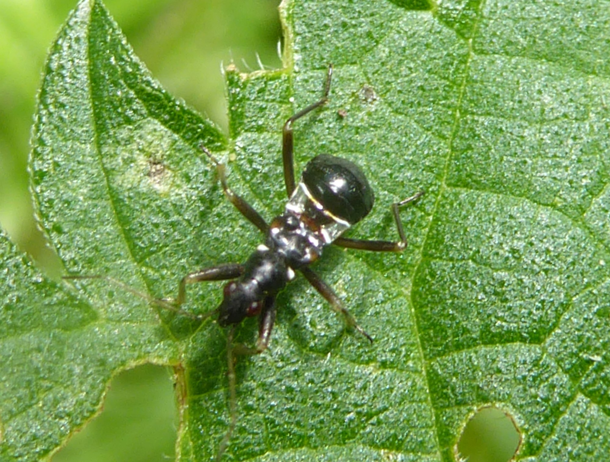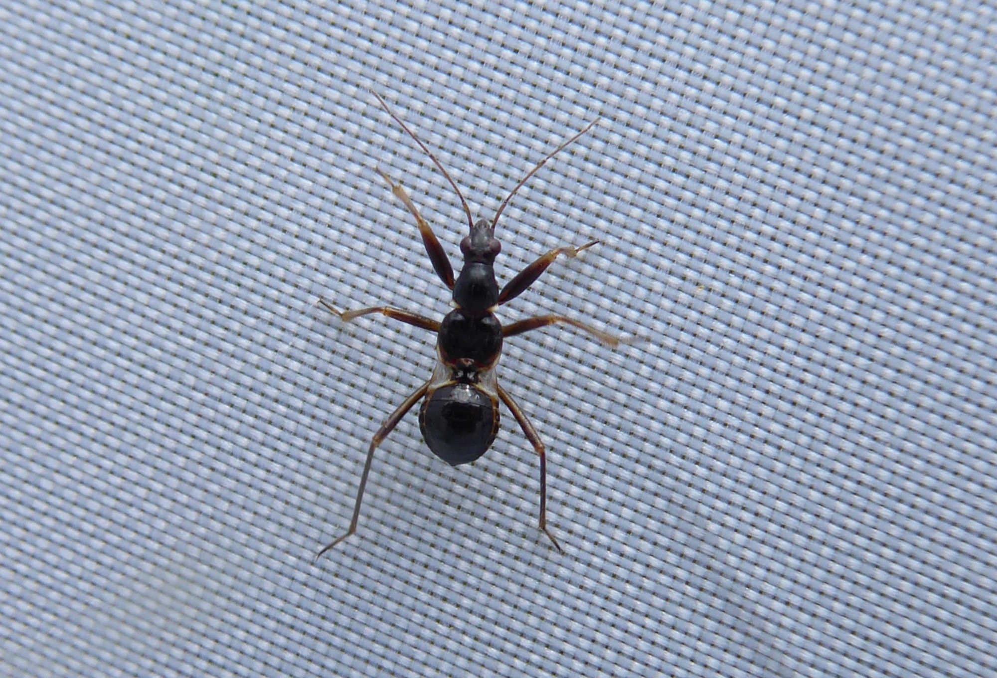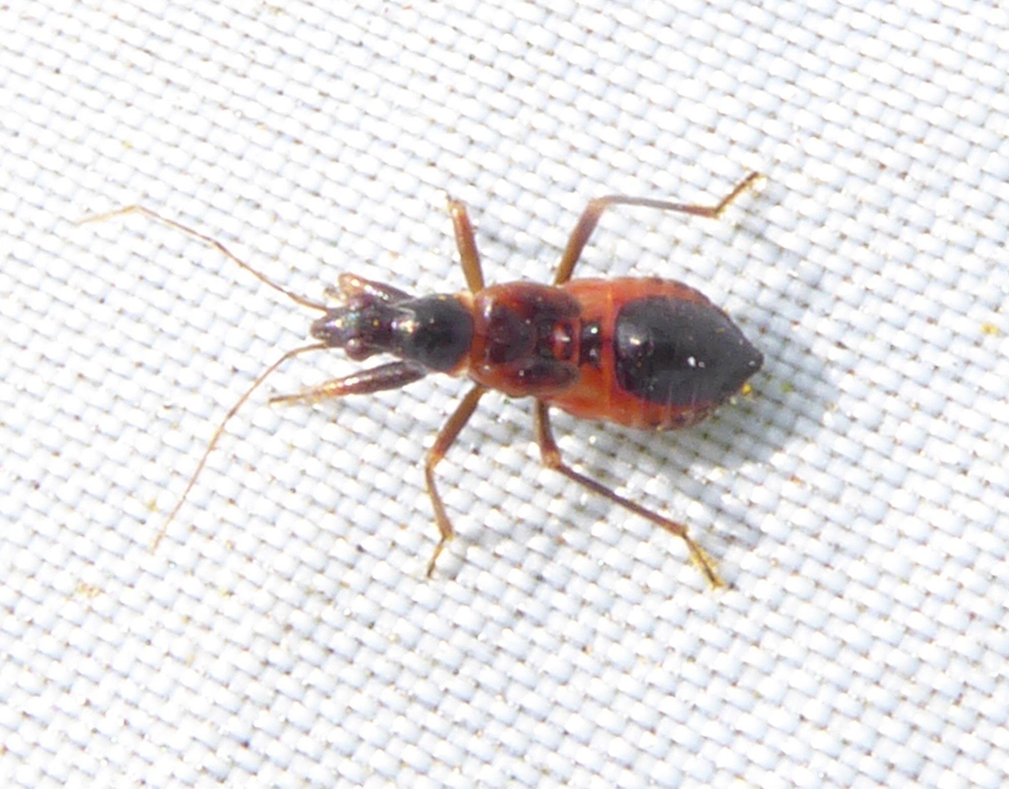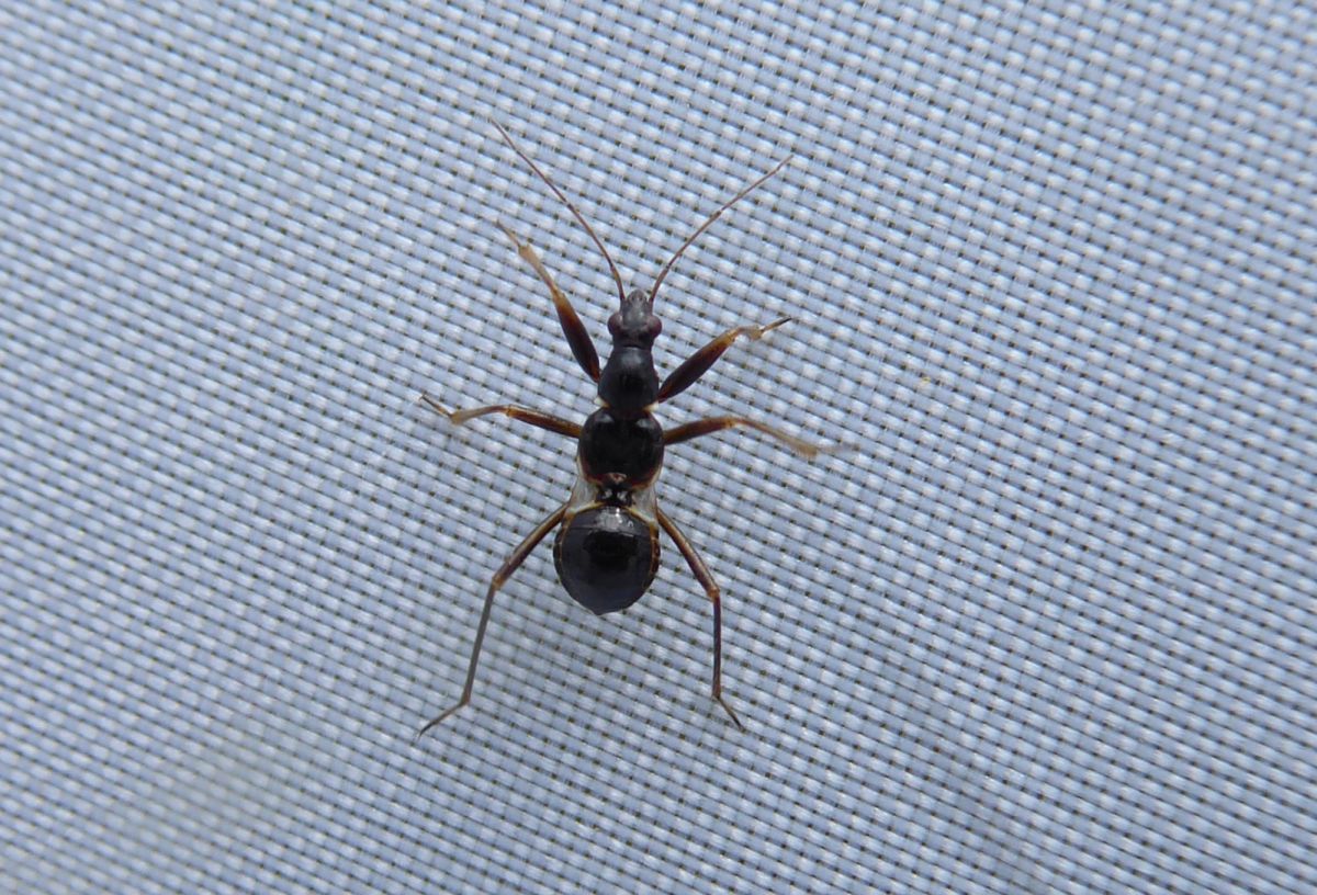Ik heb dit jaar diverse nimfen van de miersikkelwants (Himacerus mirmicoides) gefotografeerd jaar. Begin augustus opnieuw een foto gemaakt. Volgens waarneming.nl opnieuw een miersikkelwants. Maar ik heb nog niet eerder een miersikkelwantsnimf gezien met zoveel rood aan het lijf. De nimf kwam uit boerenwormkruid langs een fietspad in een vrij drassig gebied. Ik zal nog enkele foto's extra toevoegen met "gewone" nimfen.