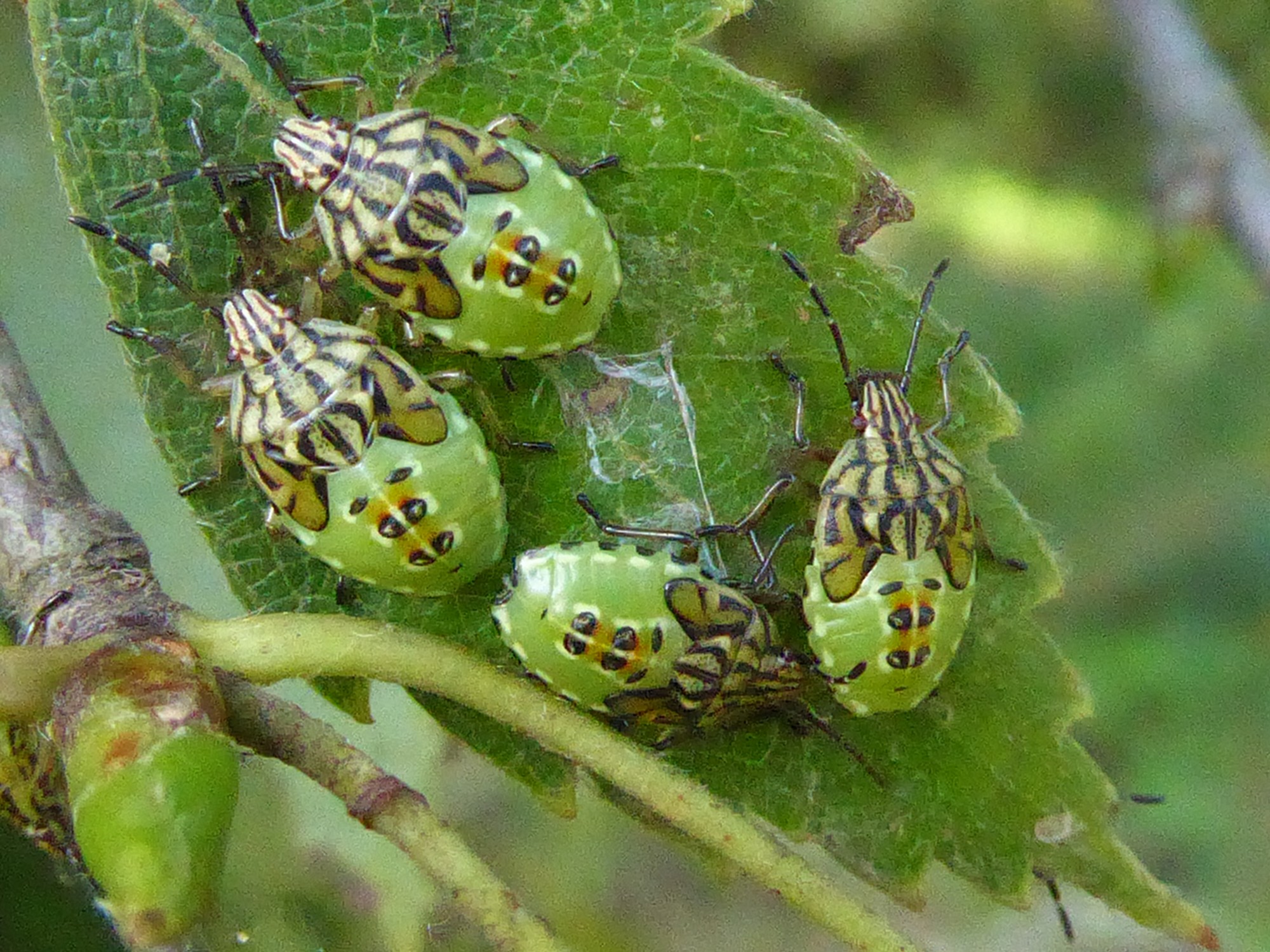 Vanmiddag op braamblad een vervellingshuidje aangetroffen langs wandelpad met els en veel berk. Een honderd meter verderop vond ik toevallig een aantal nimfen van de gewone kielwants op berk.