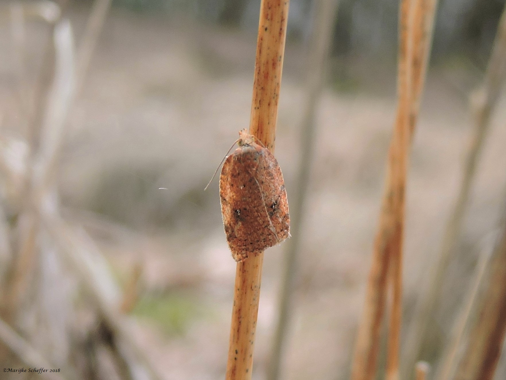 Zat ook nog te denken aan de Lichte boogbladroller-Acleris ferrugana. Er zijn wat gelijkende soorten en vaak moet de microscoop er aan te pas komen. Zie de info.