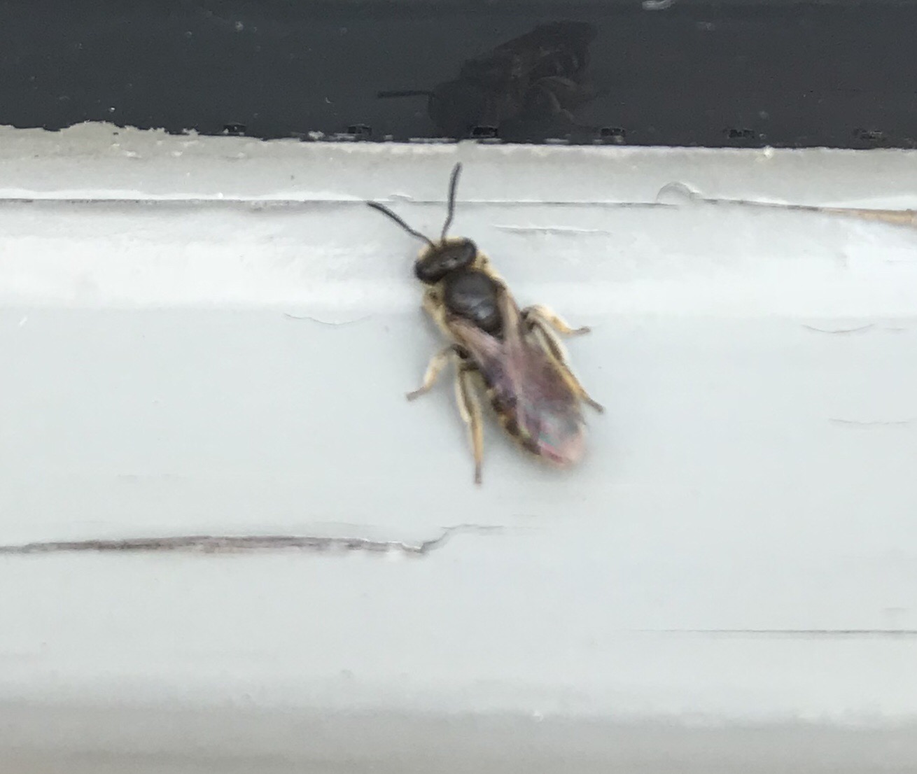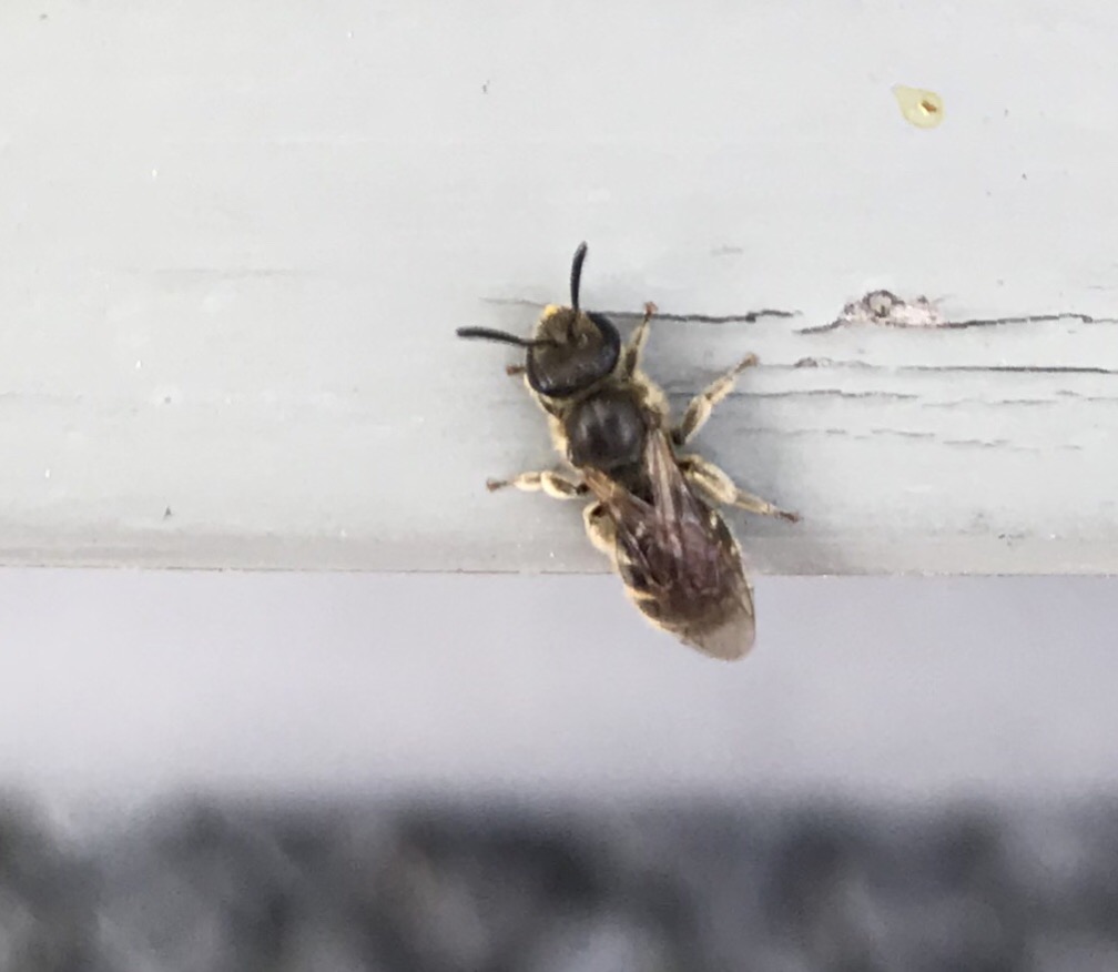 jeanette Geplaatst op 16-04-2018 om 11:59 Dat is in ieder geval al een stuk beter, maar echt goed zijn details niet te zien. Bij insecten luistert het heel nauw.....Niet te snel roepen dat het geen bij of wesp is hoor; er zijn héél veel soorten.Dit zou een van de soorten Groefbij kunnen zijn; dat is een wat kleinere soort.