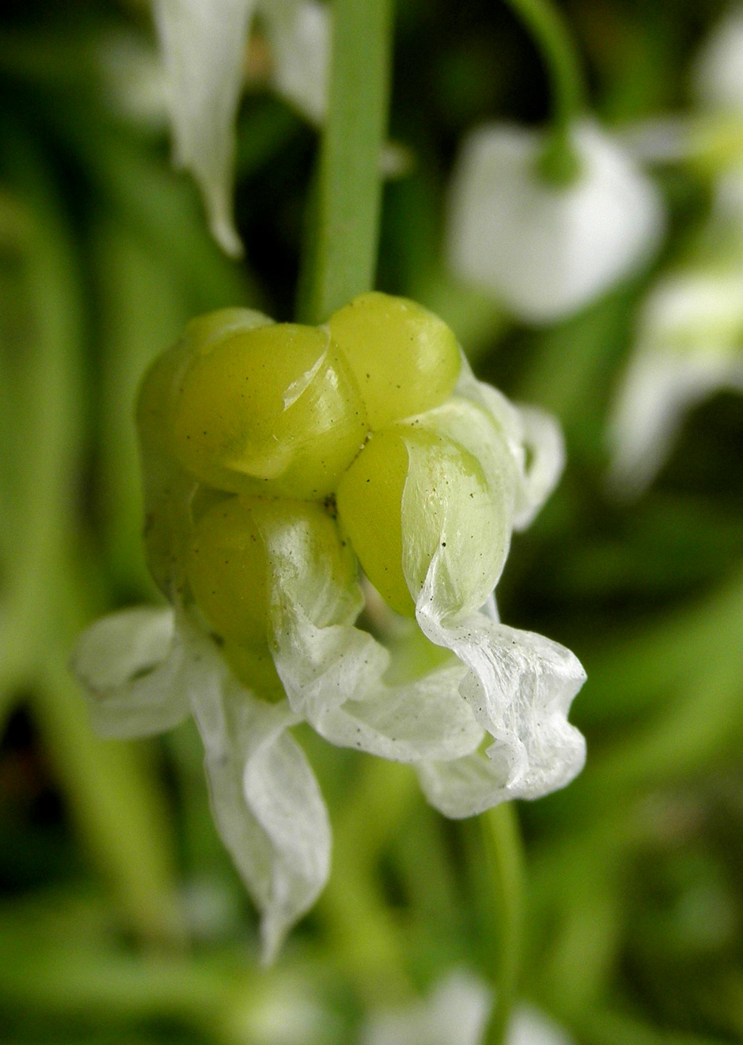 Die hangende bloempjes op de eerste foto lijken wat op Driekantig look. Maar ik ken ze alleen van plaatjes.....