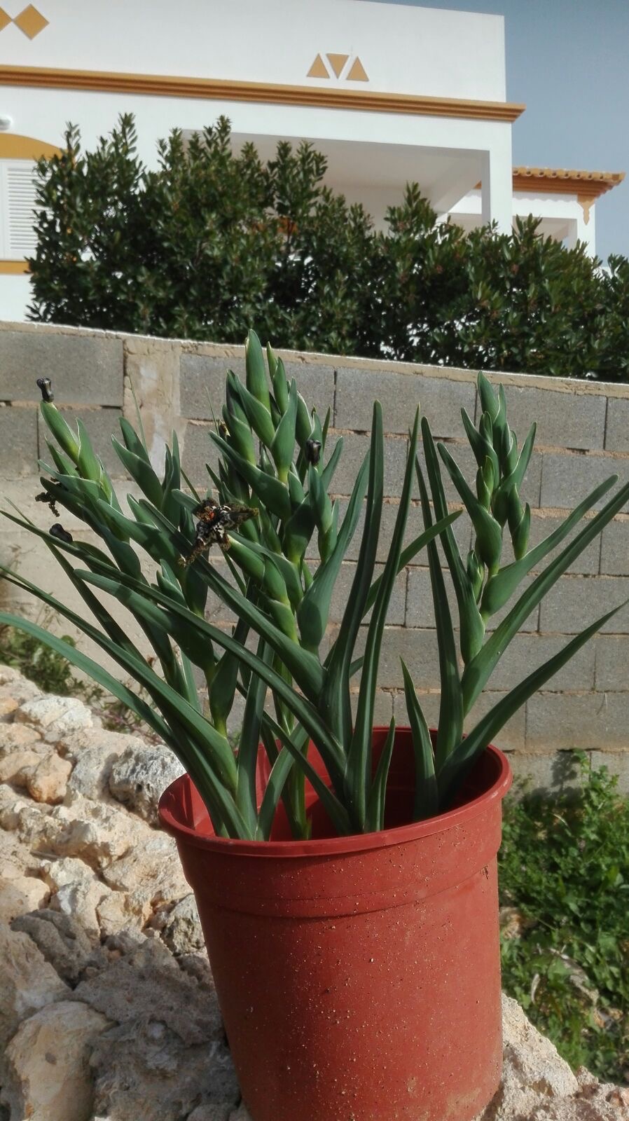Het is een bolgewas...en in een pot, zijn waarschijnlijk geplant. Of zaten de bolletjes daar al in de grond.