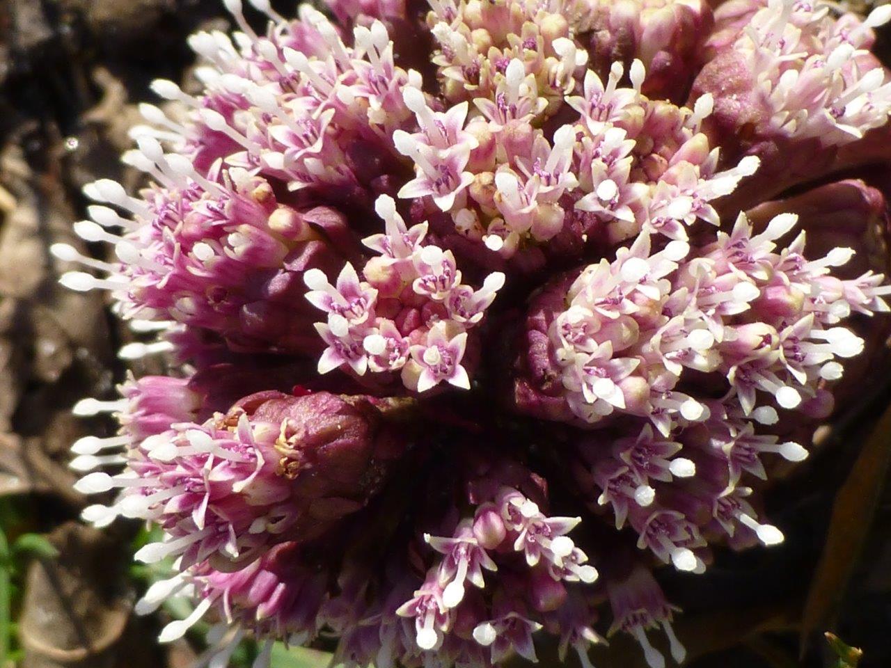Zowel Groot- als Japans hoefblad bloeien in maart/april....; in deze periode zie je alleen de bladeren.