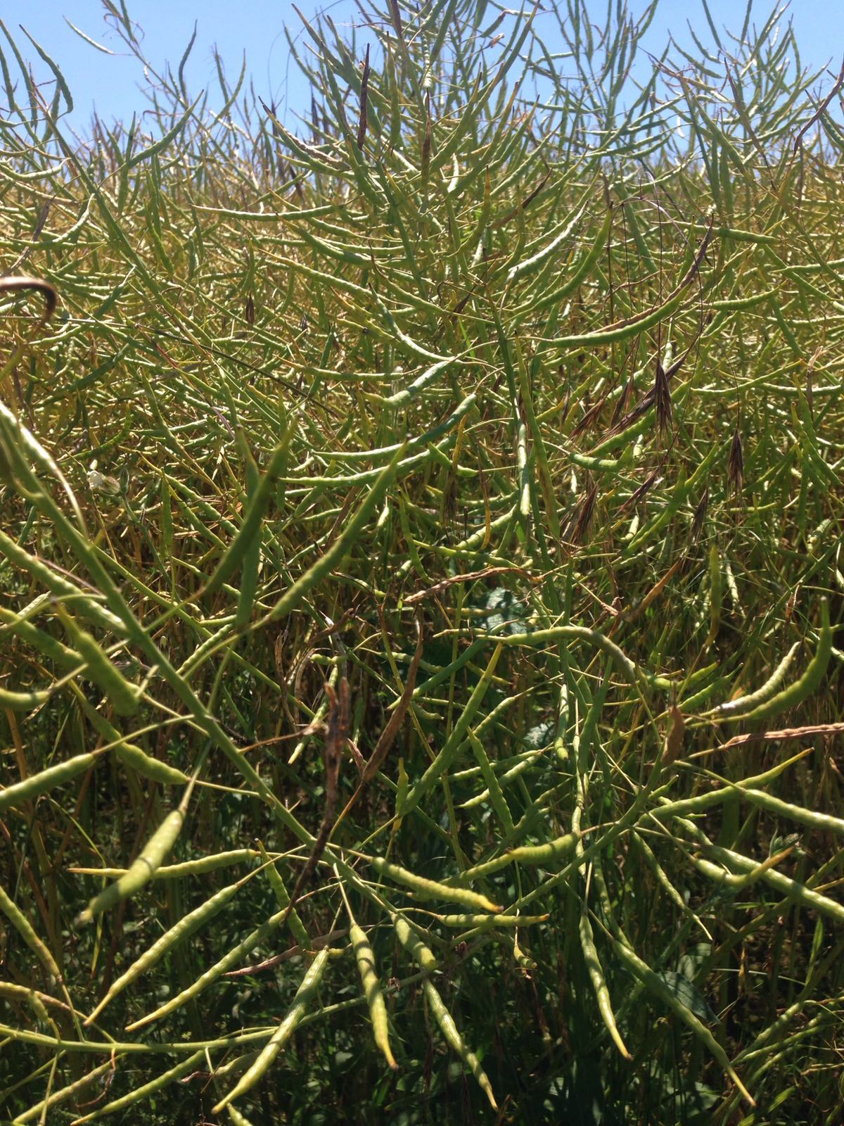 Het zijn gele bloemen en de plant kan wel een meter hoog worden. Lijkt op Koolzaad.
