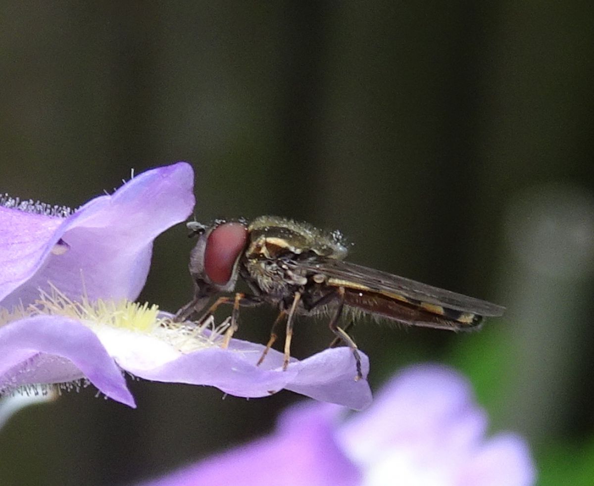 Beste Forum-ledenHebben jullie de naam van dit zweefvliegje,ong. 12 mm. lang bronskleurig borststukstaartstuk zwart en goud/grijs gestreeptstreeppatroon helaas niet kunnen vastleggenoogjes soort choco-bruinDANK, groetjes