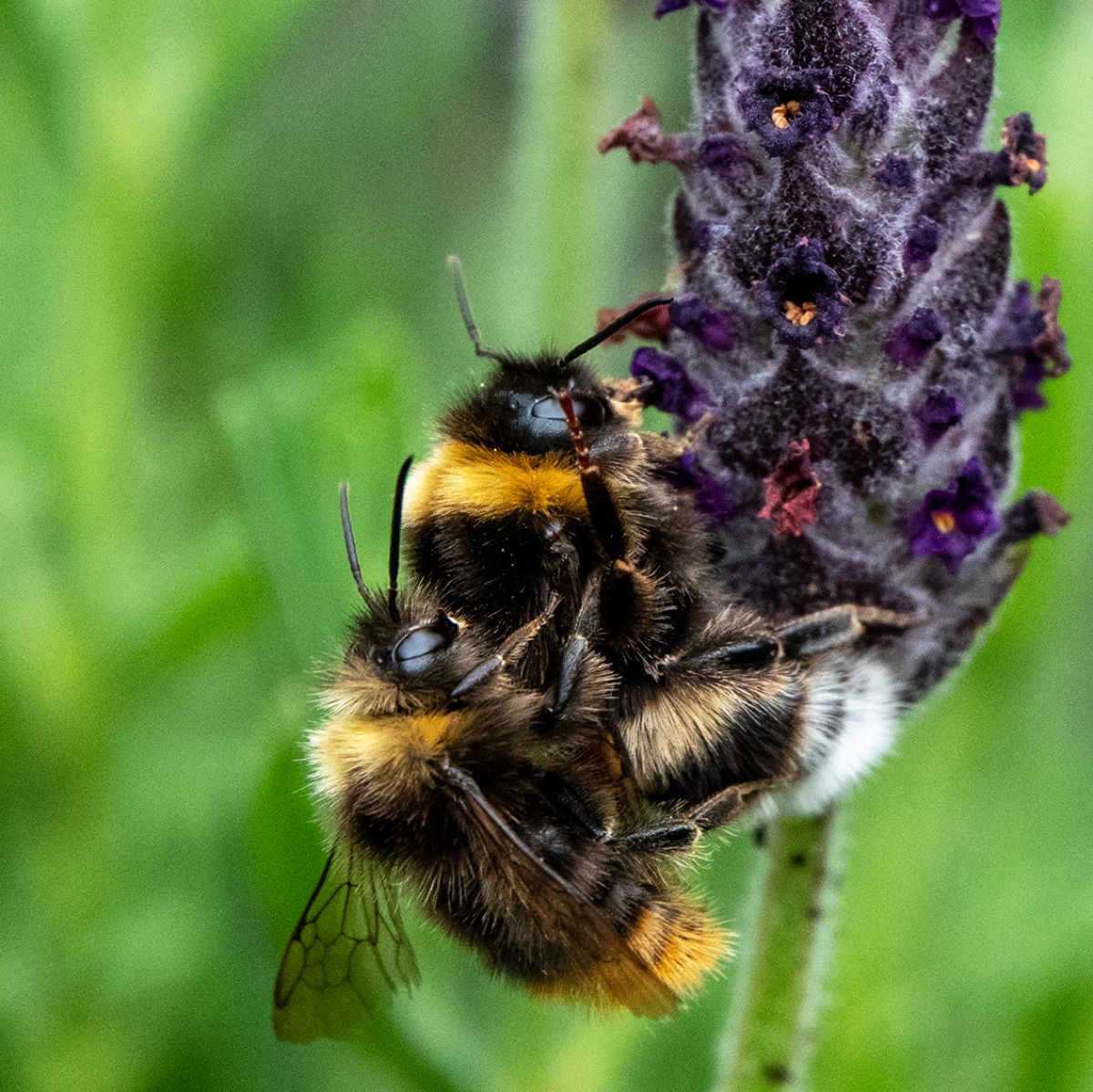 In mijn tuin landde er een hommel op een andere hommel, maar het lijken verschillende hommels