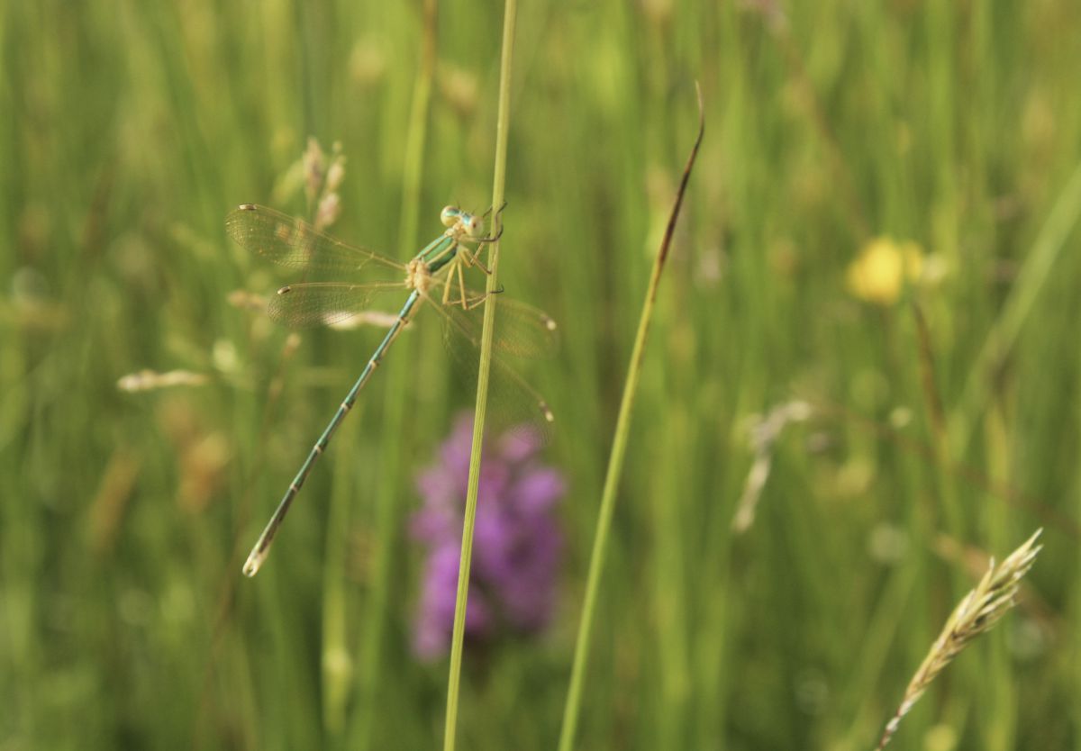 Kwam deze juffer vanmorgen tegen in een kalkrijk drasgebied, waar ook honderden gevlekte orchis stonden. Foto is net niet helemaal scherp, maar helaas: geen tweede kans. Welke juffer is dit?