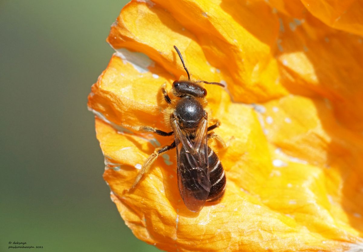 Kleine bijensoort in de tuin op papaver. Een soort Groefbij?Breda 23-05-21