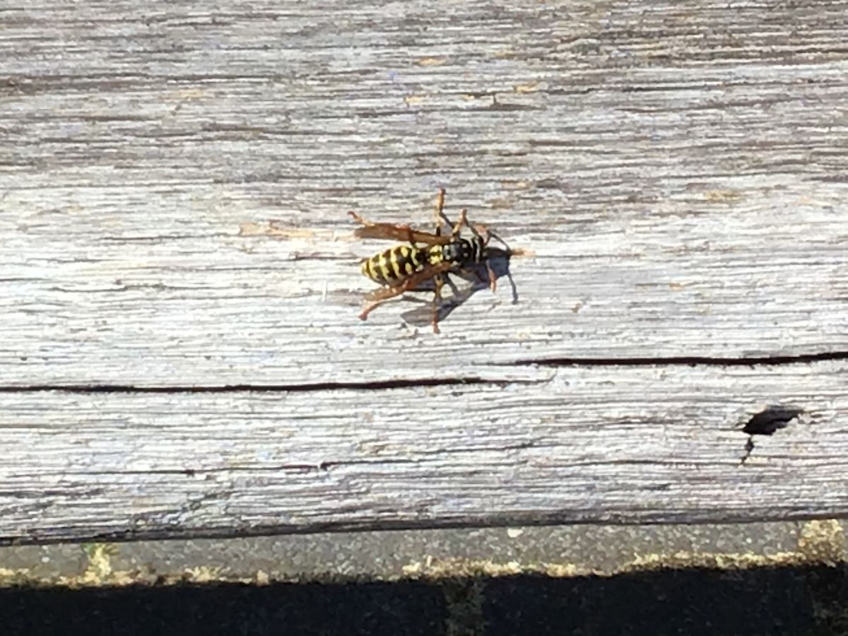 Voor het zoveelste jaar zit er een wat langere wespensoort onder onze dakpannen. In het voorjaar gaan ze driftig de eikenhouten picknickbank te lijf. Verder hebben we er weinig last van dus geen Duitse of Limonade wesp. Na het voorjaar zien we ze niet meer. We laten ze dan ook niet weghalen maar ik ...