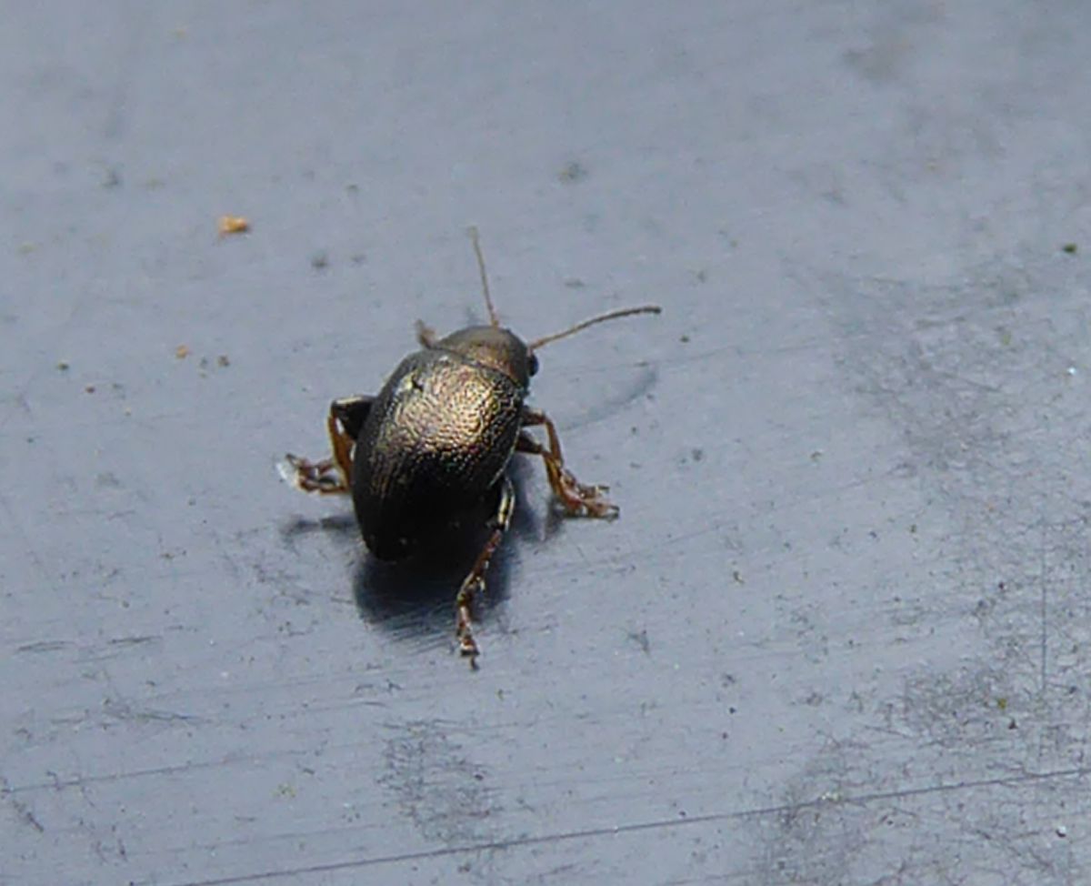 Vanmiddag aangetroffen op deksel container in de achtertuin. Het kevertje was slechts enkele mm groot, dus lastig te fotograferen met mijn compactcamera!Waarneming.nl geeft op grond van de ene foto als mogelijkheid donkere valkever; voer ik een andere foto in, dan krijg ik als suggestie: Nalassus la...